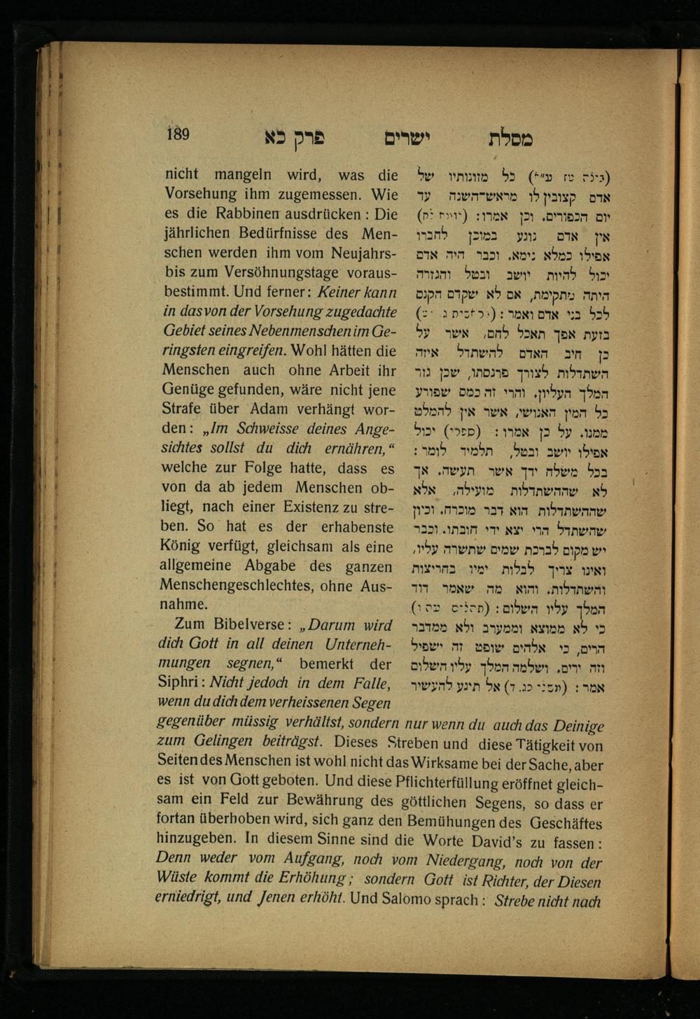 Lebensführung der Redlichen / von Mosche Chaim Luzzatto. Mit einer neben dem Text befindlichen dt. Übers. von Oskar Sachariasohn