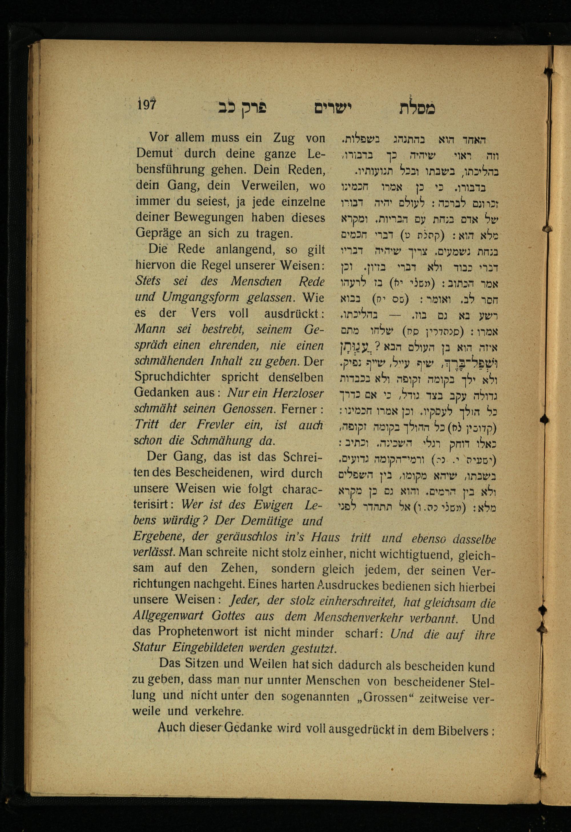 Lebensführung der Redlichen / von Mosche Chaim Luzzatto. Mit einer neben dem Text befindlichen dt. Übers. von Oskar Sachariasohn