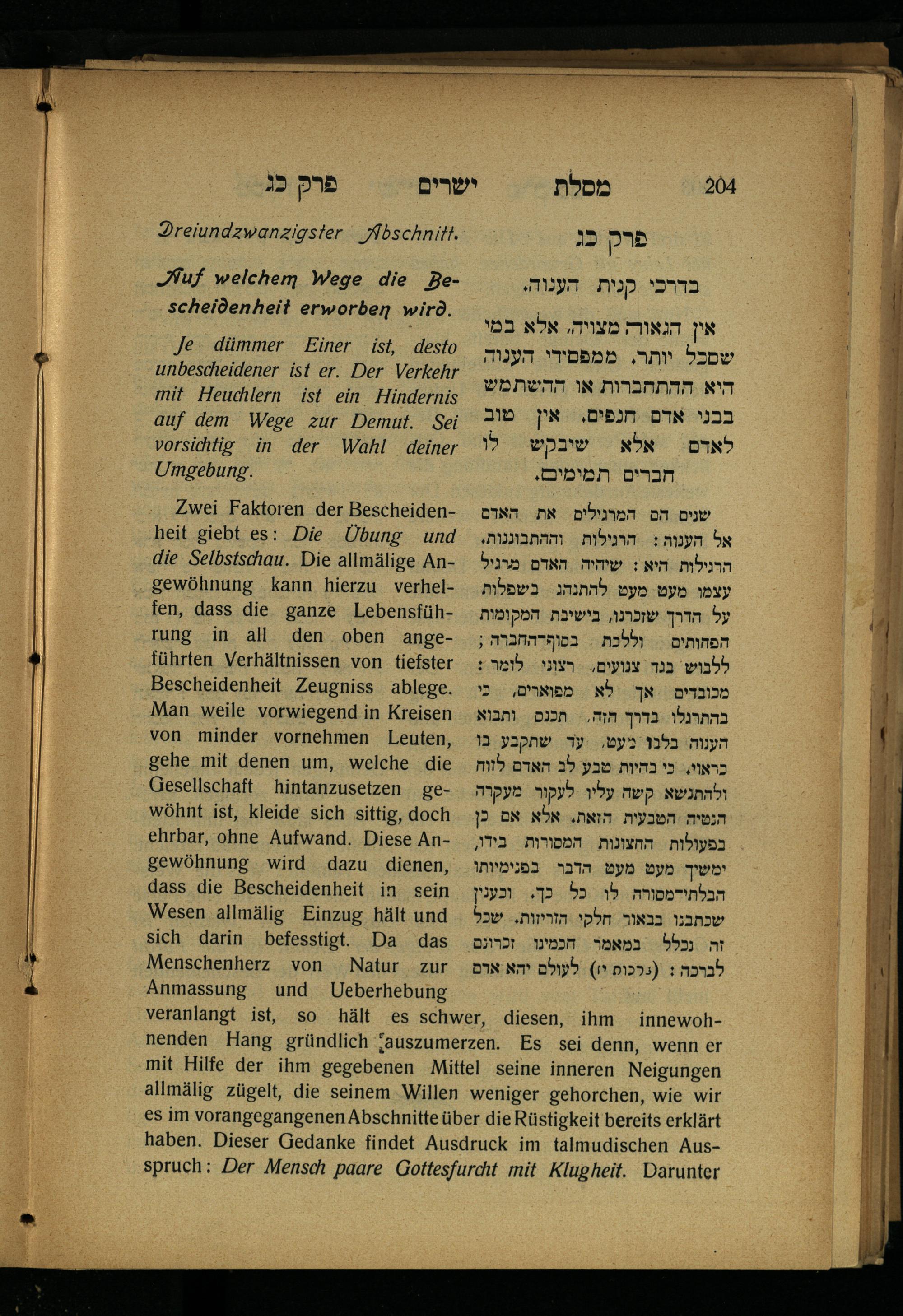 Lebensführung der Redlichen / von Mosche Chaim Luzzatto. Mit einer neben dem Text befindlichen dt. Übers. von Oskar Sachariasohn