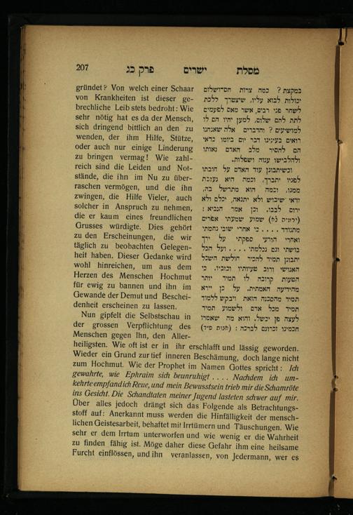 Lebensführung der Redlichen / von Mosche Chaim Luzzatto. Mit einer neben dem Text befindlichen dt. Übers. von Oskar Sachariasohn