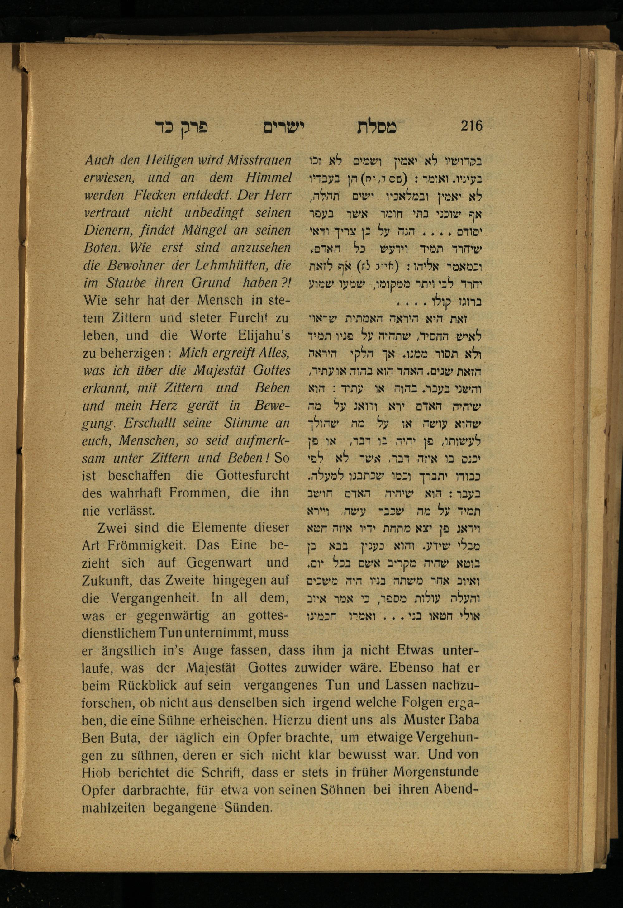 Lebensführung der Redlichen / von Mosche Chaim Luzzatto. Mit einer neben dem Text befindlichen dt. Übers. von Oskar Sachariasohn