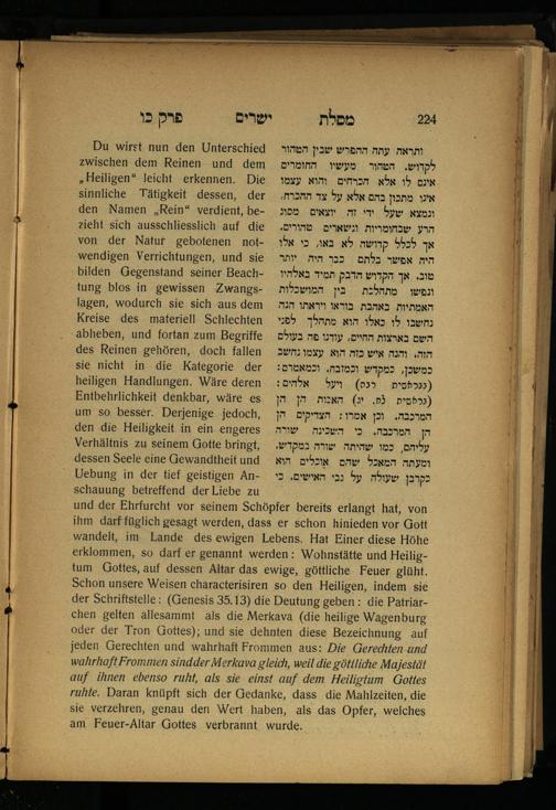 Lebensführung der Redlichen / von Mosche Chaim Luzzatto. Mit einer neben dem Text befindlichen dt. Übers. von Oskar Sachariasohn