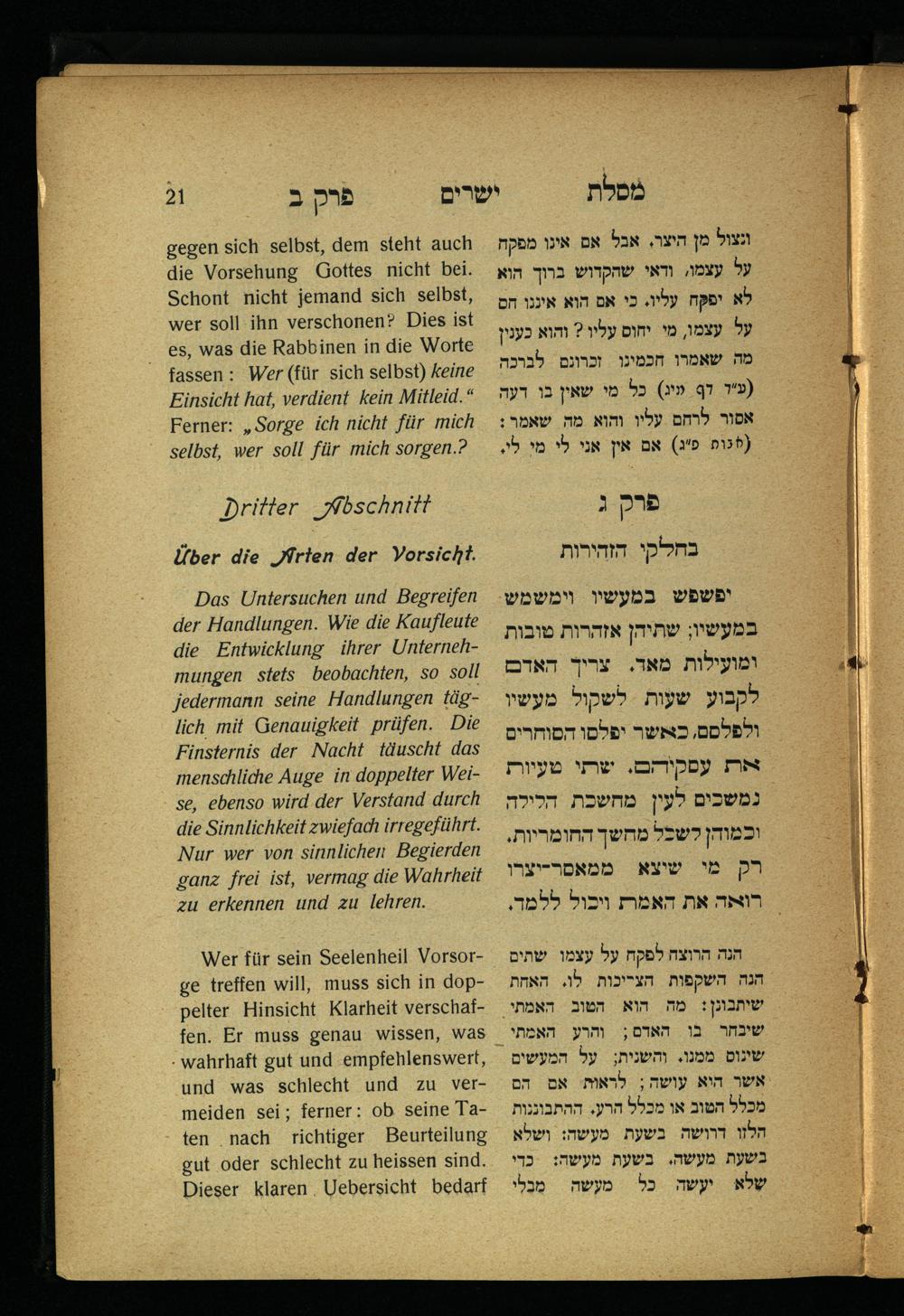 Dritter Abschnitt. Über die Arten der Vorsicht. פרק ג. בחלקי הזהירות