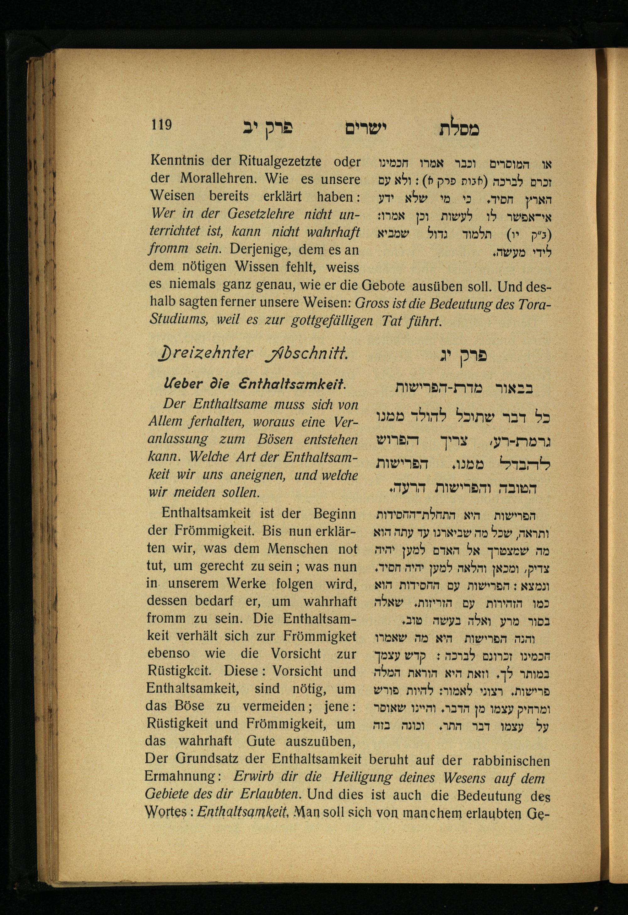Dreizehnter Abschnitt. Ueber die Enthaltsamkeit. פרק יג. בבאור מדת-הפרישות
