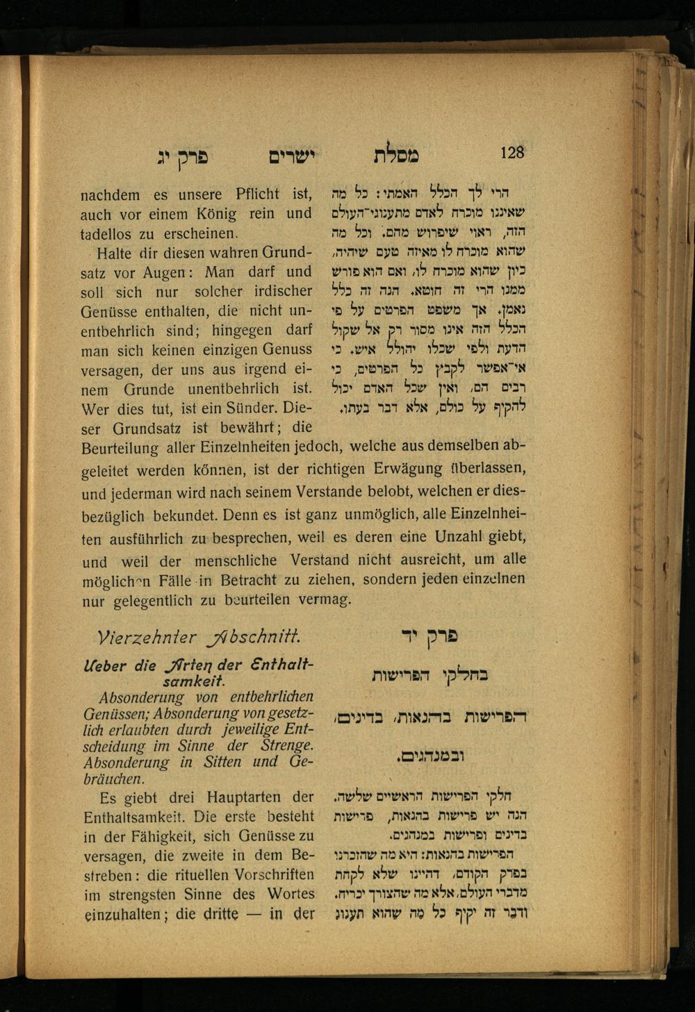 Vierzehnter Abschnitt. Ueber die Arten der Enthaltsamkeit. פרק יד. בחלקי הפרישות