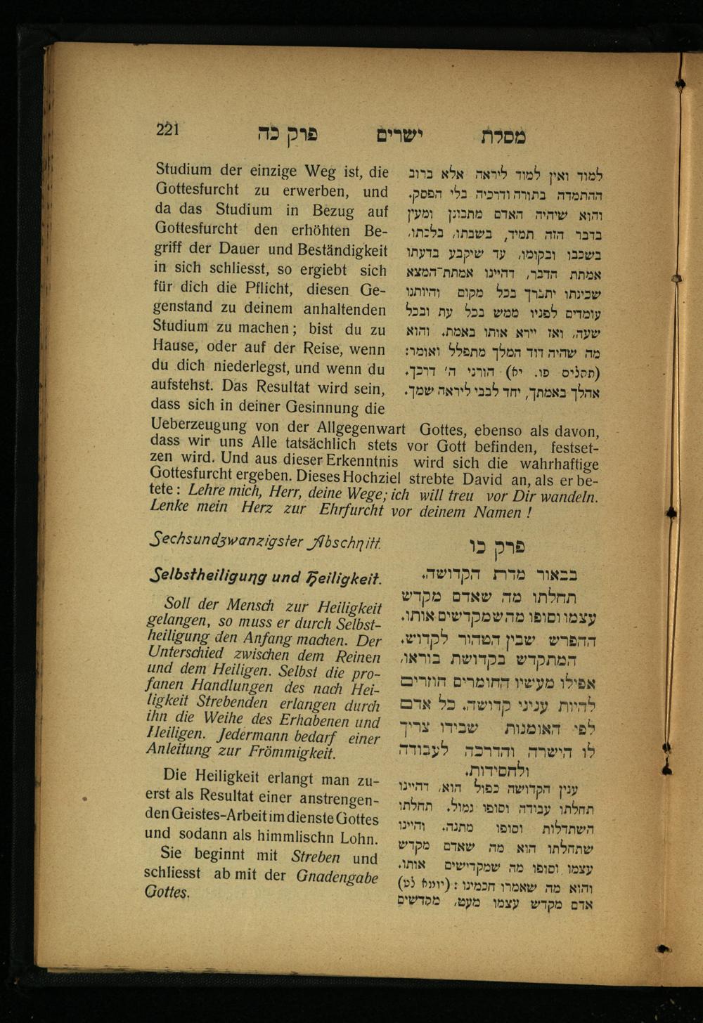Sechsundzwanzigster Abschnitt. Selbstheiligung und Heiligkeit. פרק כו. בבאור מדת...