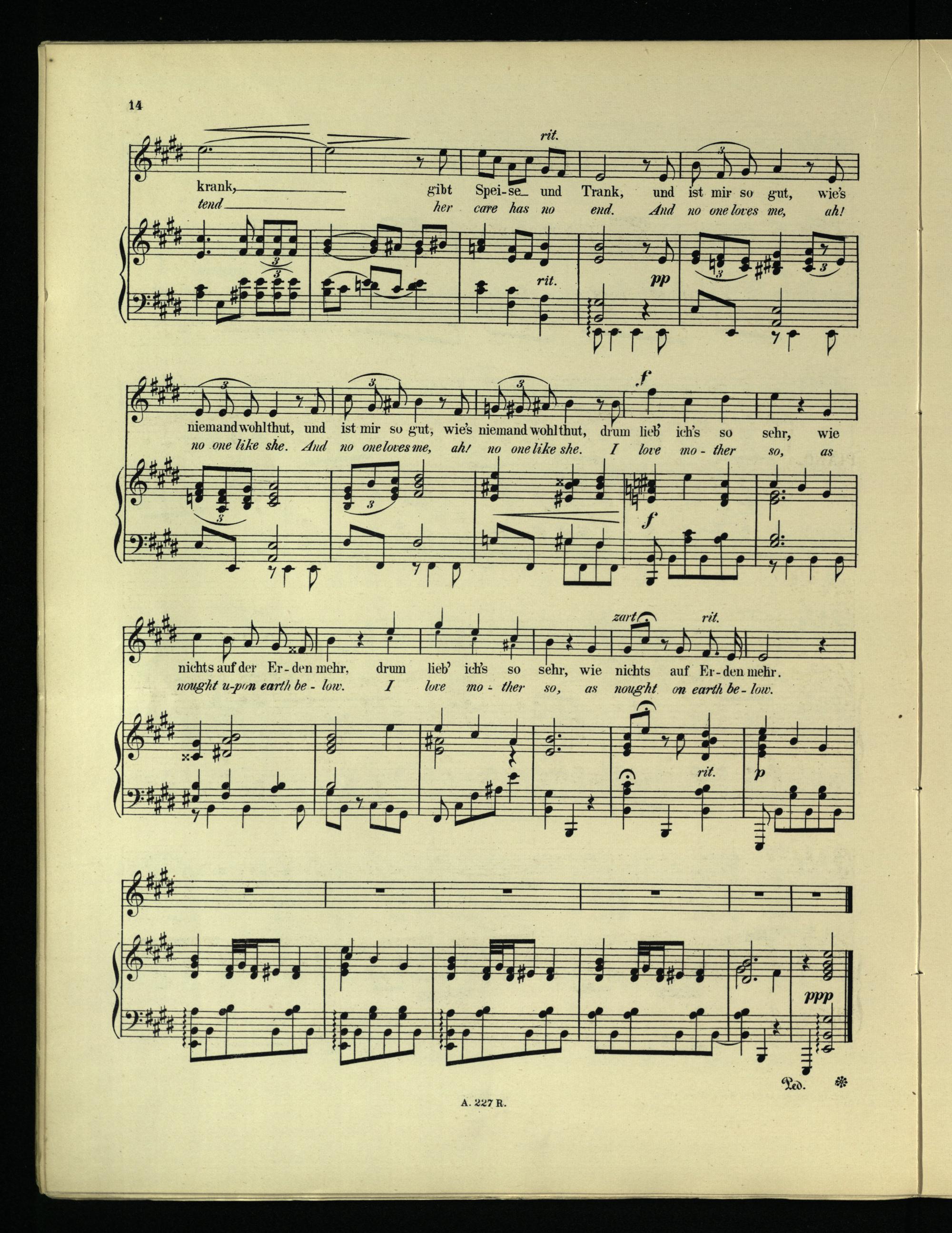 Fischhof-Album : Auswahl beliebter Lieder und Gesänge mit deutschem und englischem Text für 1 Singstimme mit Klavierbegleitung / von Robert Fischhof