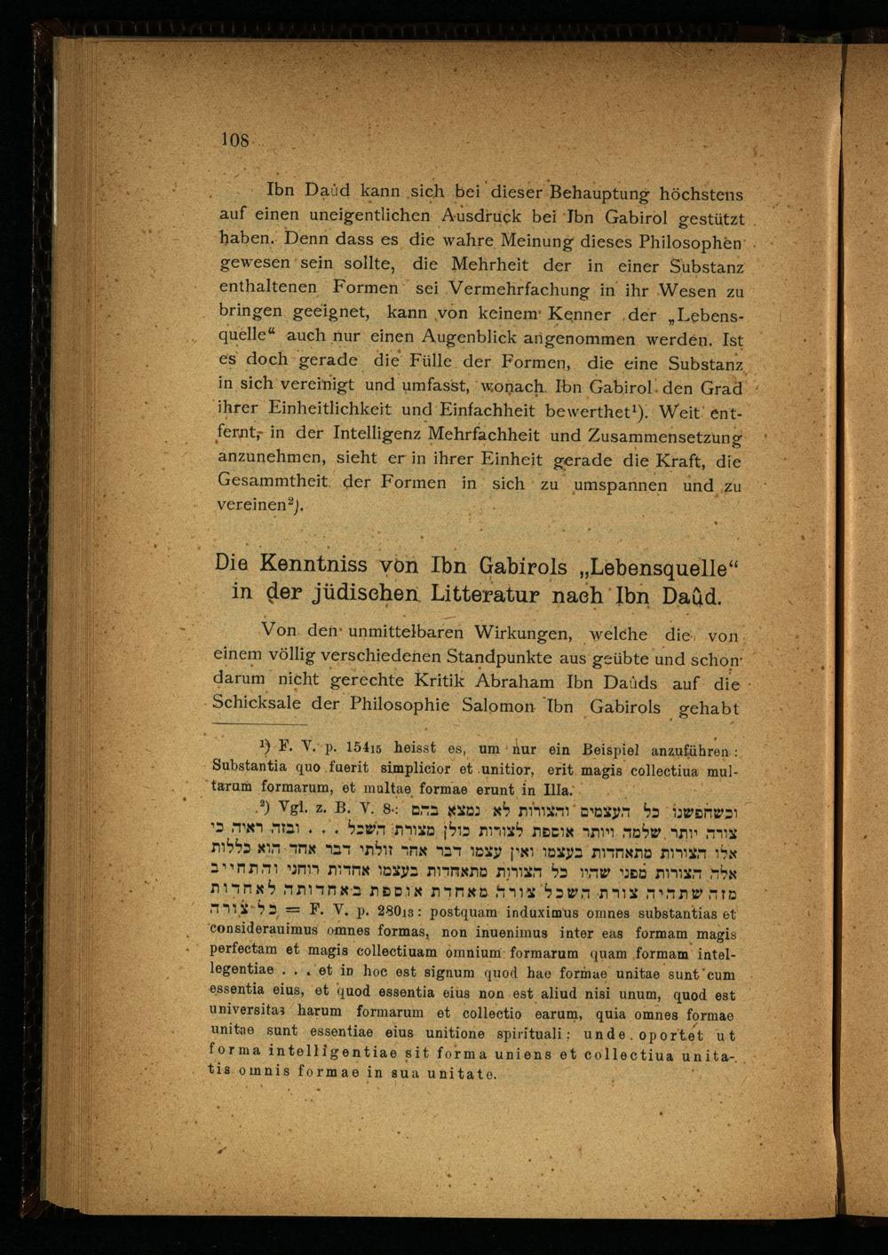 Die Kenntnis von Ibn Gabirols "Lebensquelle" in der jüdischen Litteratur nach Ibn Daûd.