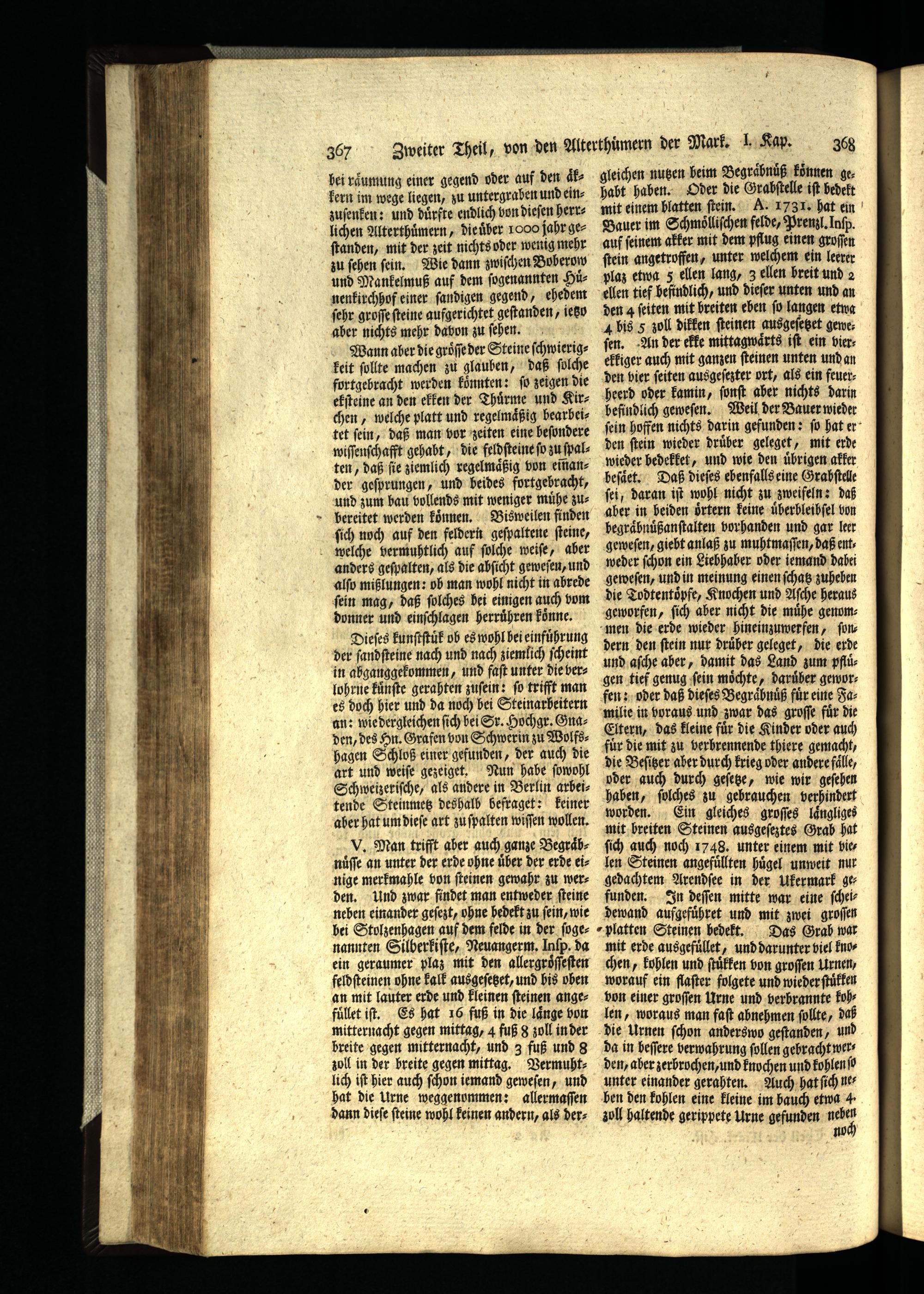 Das I. Kapittel. Von den alten Steinen, Grabmahlen, Todtentöpfen und anderen noch...