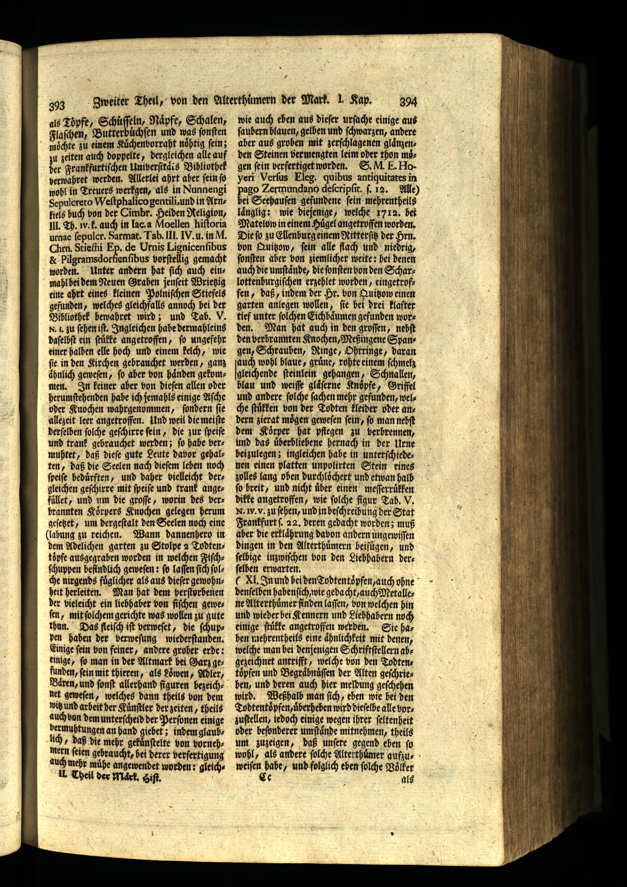 Das I. Kapittel. Von den alten Steinen, Grabmahlen, Todtentöpfen und anderen noch...