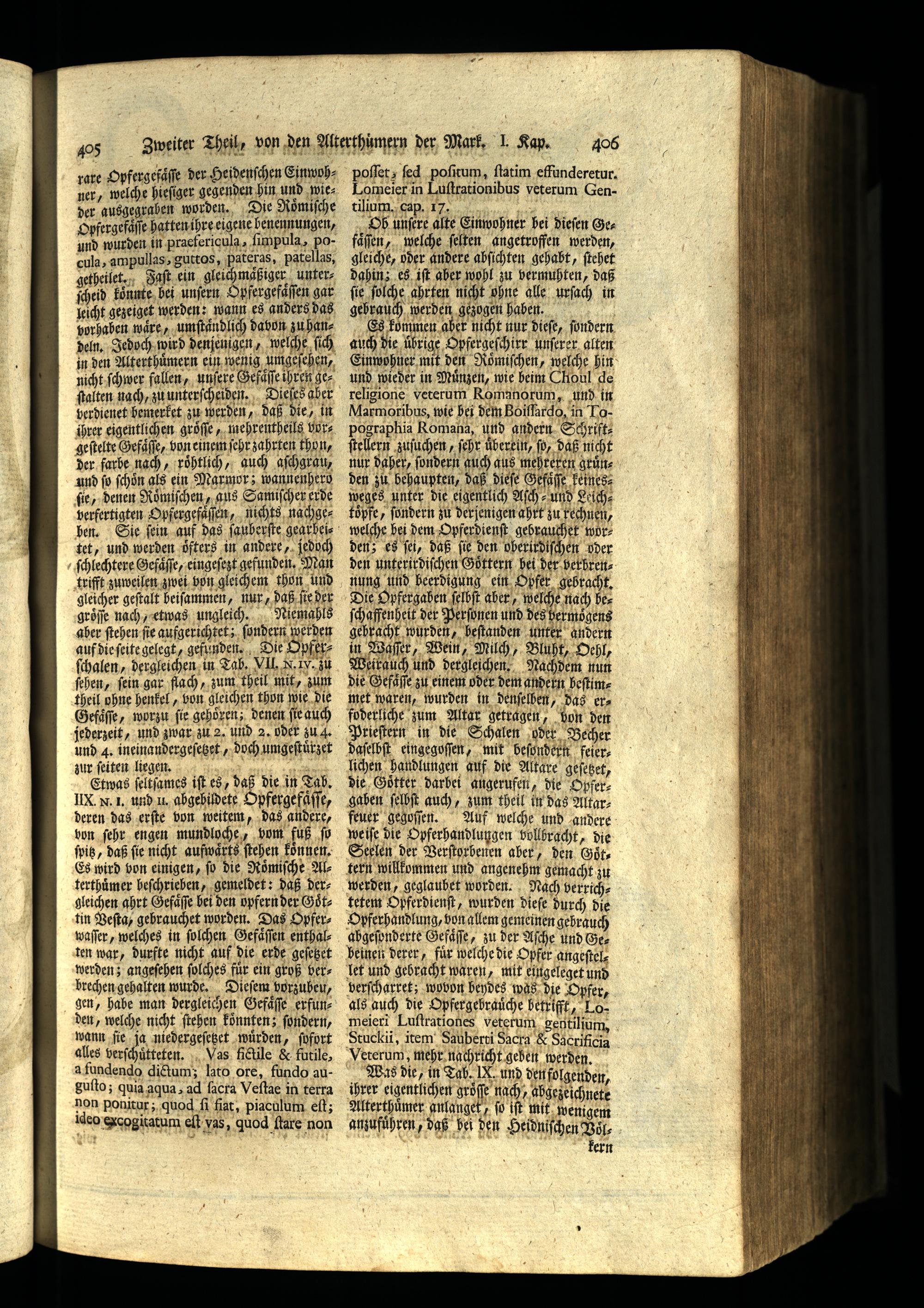Das I. Kapittel. Von den alten Steinen, Grabmahlen, Todtentöpfen und anderen noch...
