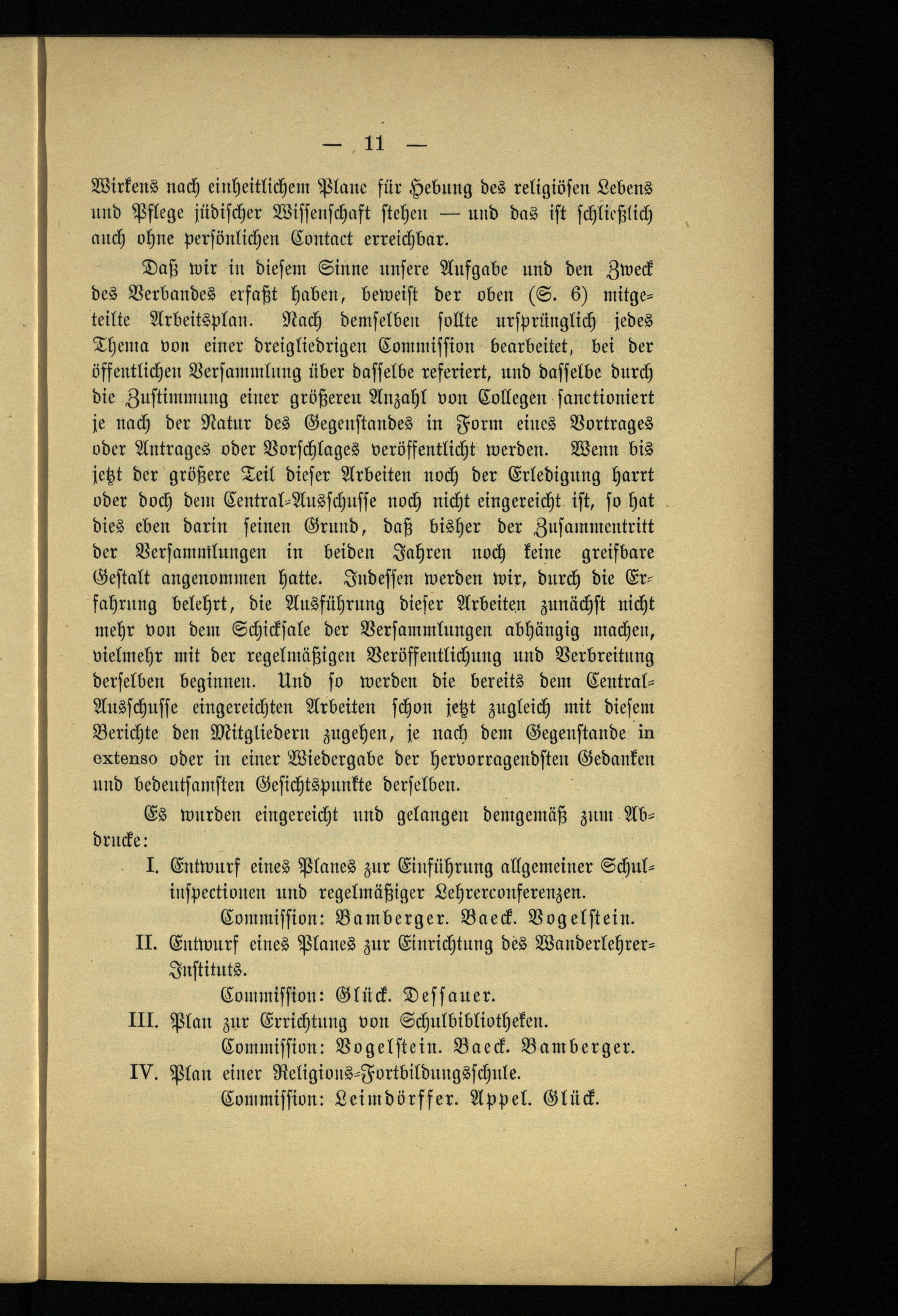 Anlage II. Bericht über die von den Subcommissionen der in der Sitzung vom 5. Juni 1884 von der Rabbinerversammlung eingesetzten Ausführungs-Commission eingegangenen Arbeiten.