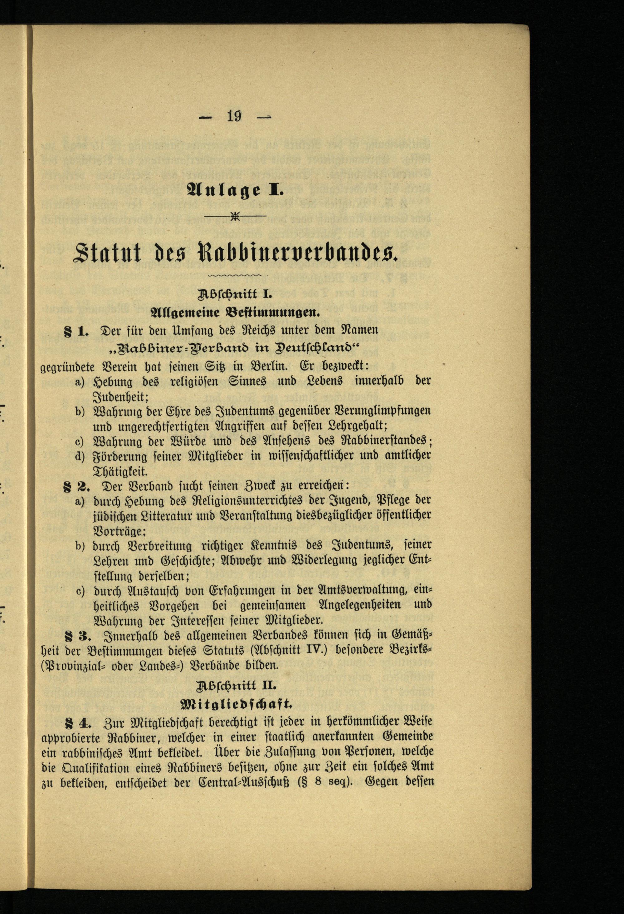 Erster Bericht des Rabbiner-Verbandes in Deutschland