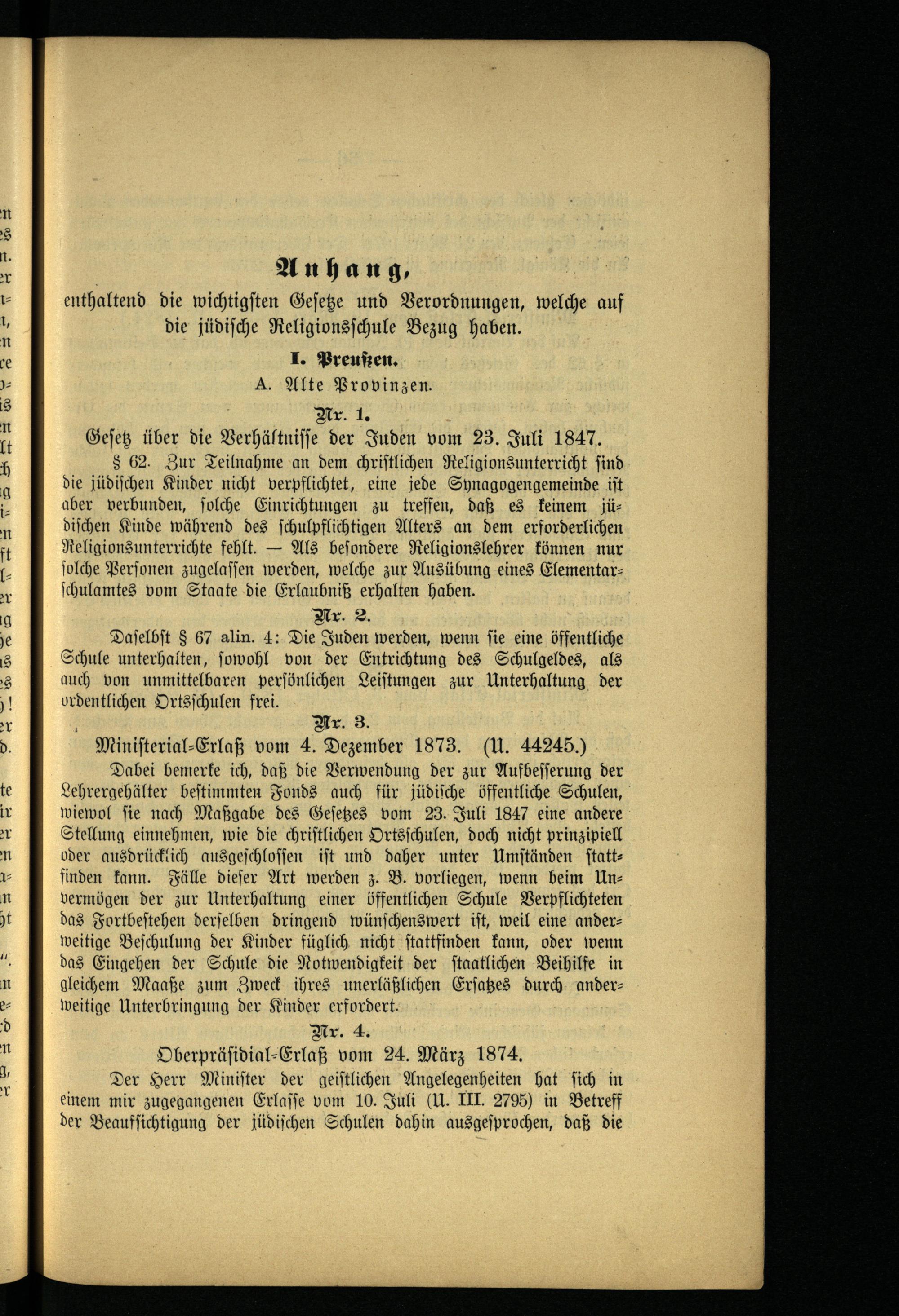 Anhang, enthaltend die wichtigsten Gesetze und Verordnungen, welche auf die jüdische Religionsschule Bezug haben.