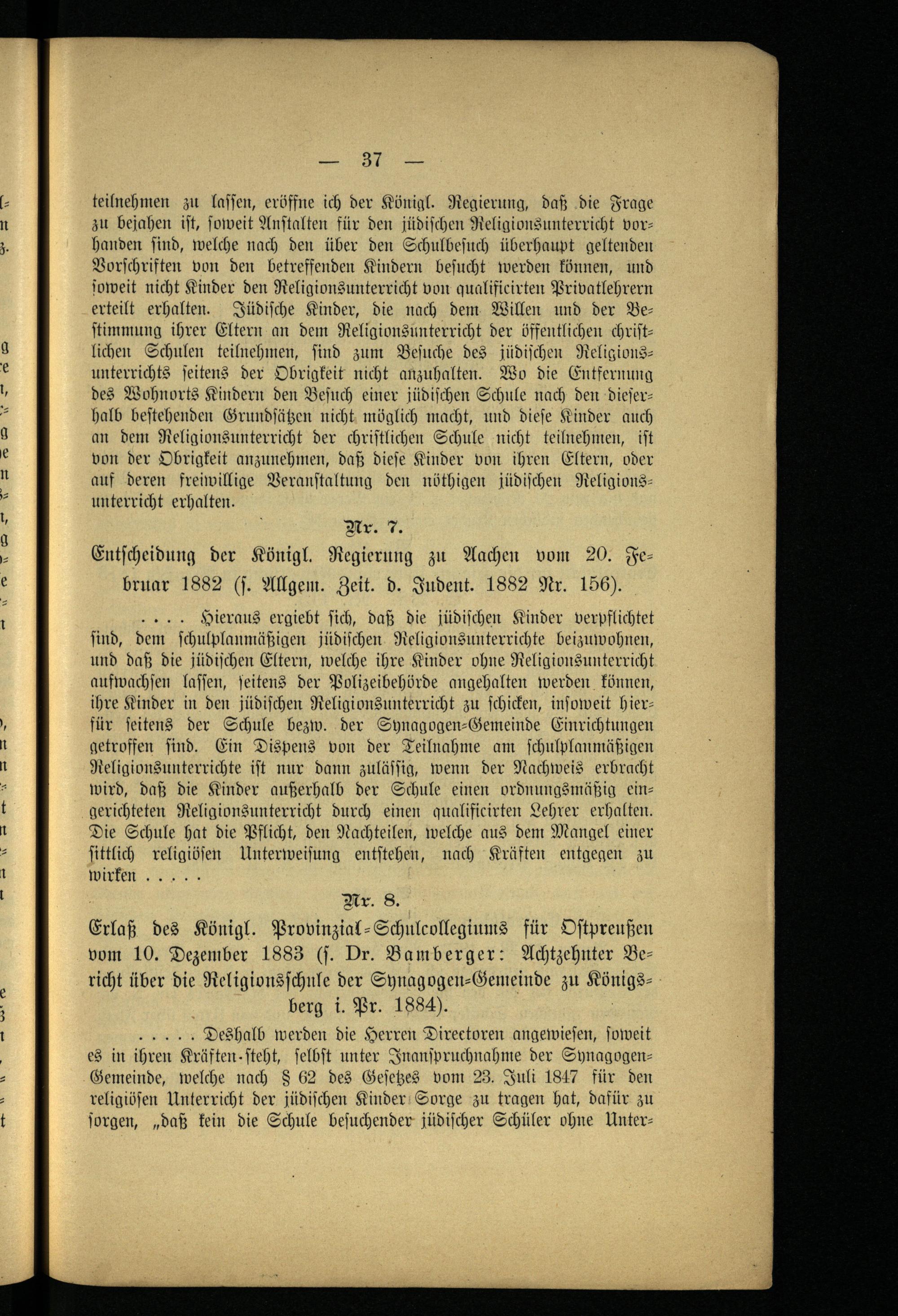 Anlage III. Gesetze, Reskripte, Verordnungen u.s.w. über den jüdischen Religions-Unterricht.