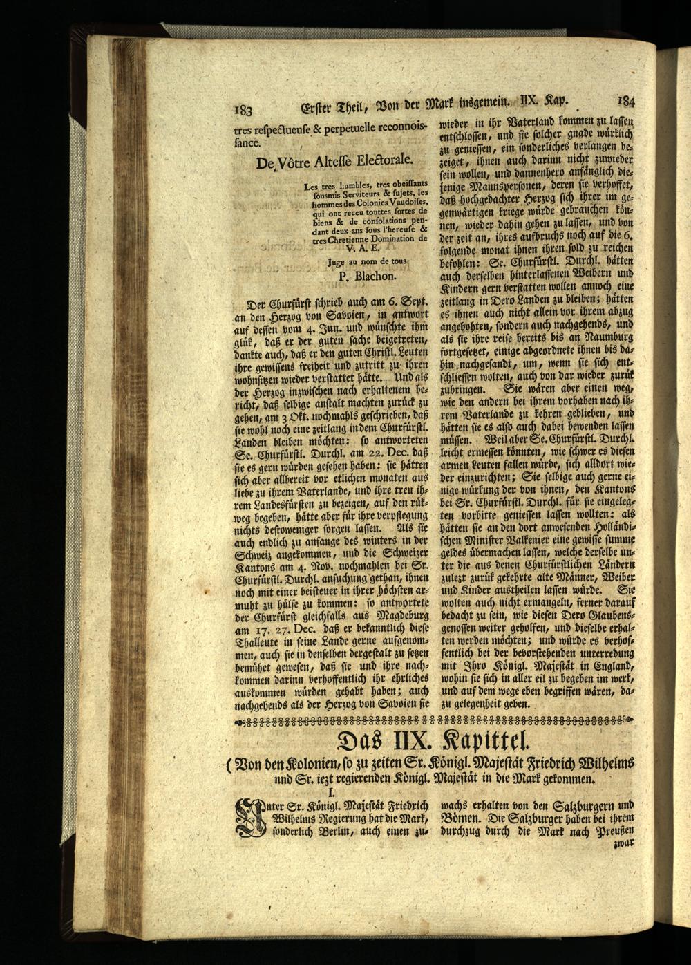 Das IIX. Kapittel. Von den Kolonien, so zu zeiten Sr. Königl. Mafestät Friedrich...