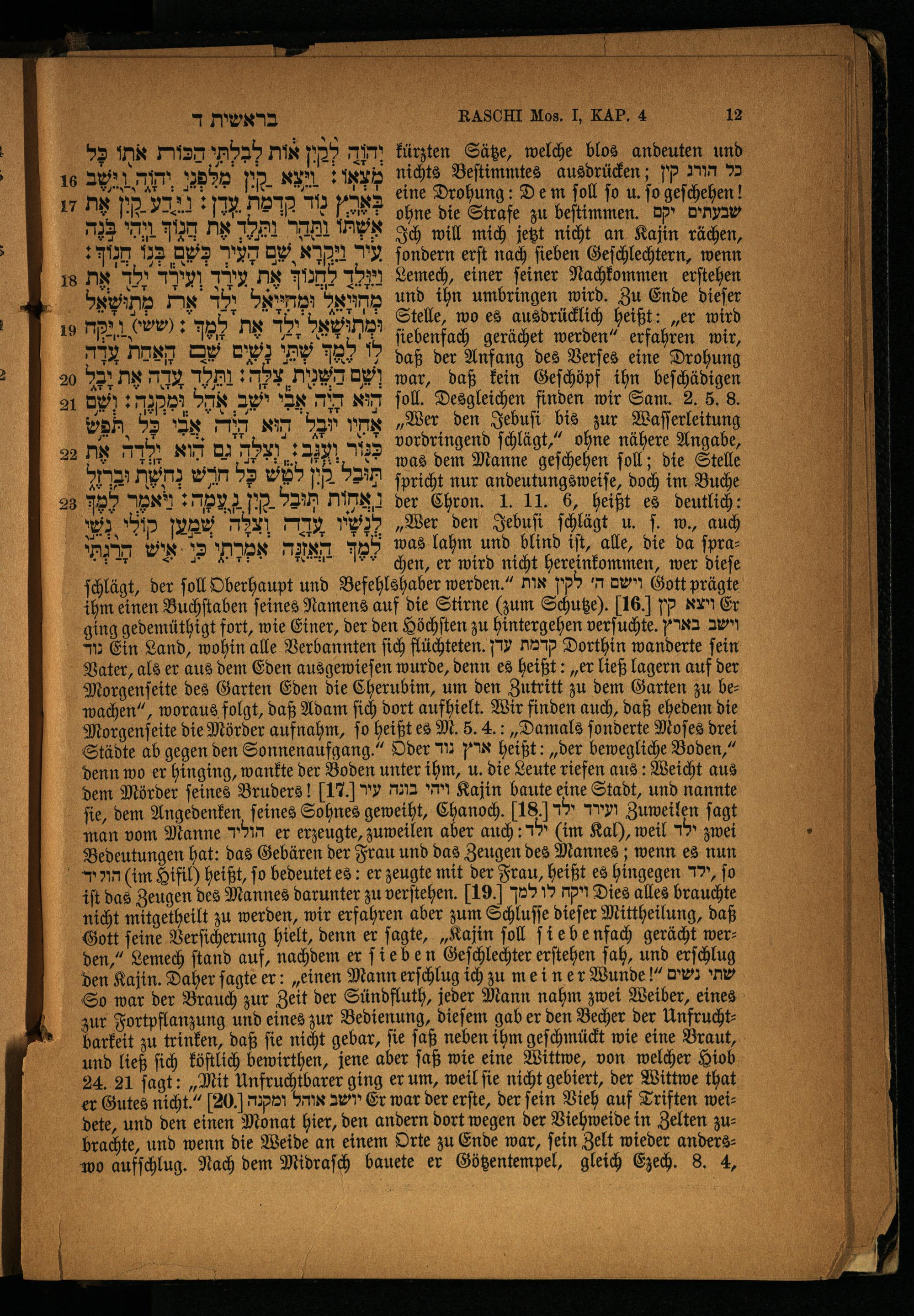 Der Raschi-Kommentar zu den fünf Büchern Moses / vollständig ins Deutsche übersetzt mit beigedrucktem Bibel-Texte in einem Bande von Julius Dessauer, emerit. Rabb., Herausgeber des: "Lexikon der Kernsprüche für Talmud und Midrasch", des "Schlüssel zum Gebetbuch sammt Ritualgesetze der Israeliten ... u.a.m.