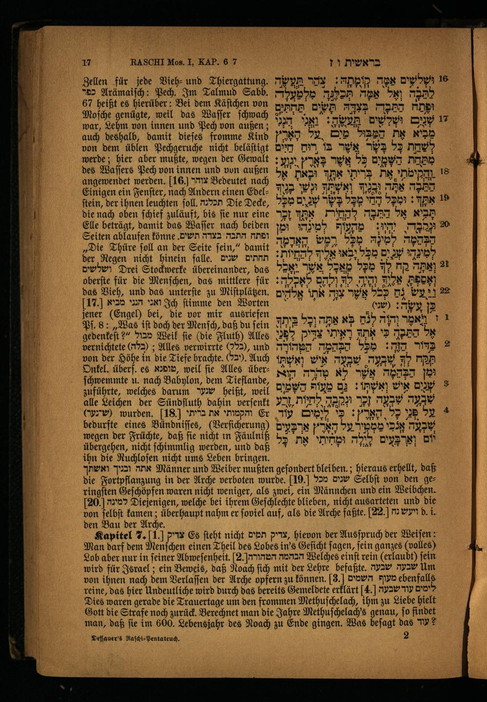 Der Raschi-Kommentar zu den fünf Büchern Moses / vollständig ins Deutsche übersetzt mit beigedrucktem Bibel-Texte in einem Bande von Julius Dessauer, emerit. Rabb., Herausgeber des: "Lexikon der Kernsprüche für Talmud und Midrasch", des "Schlüssel zum Gebetbuch sammt Ritualgesetze der Israeliten ... u.a.m.