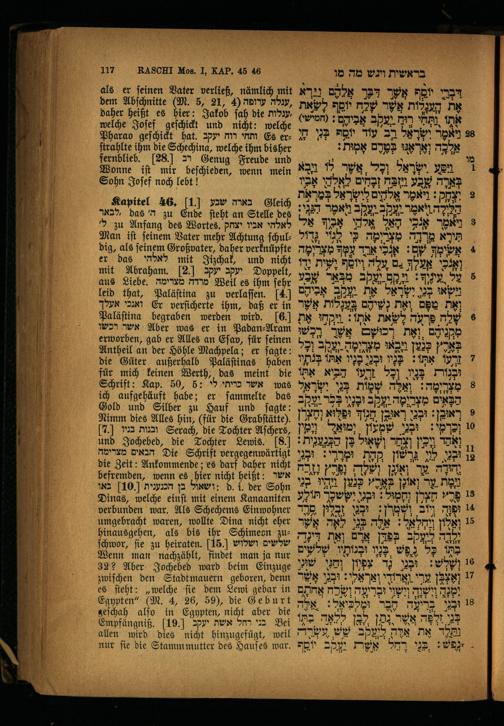 Der Raschi-Kommentar zu den fünf Büchern Moses / vollständig ins Deutsche übersetzt mit beigedrucktem Bibel-Texte in einem Bande von Julius Dessauer, emerit. Rabb., Herausgeber des: "Lexikon der Kernsprüche für Talmud und Midrasch", des "Schlüssel zum Gebetbuch sammt Ritualgesetze der Israeliten ... u.a.m.