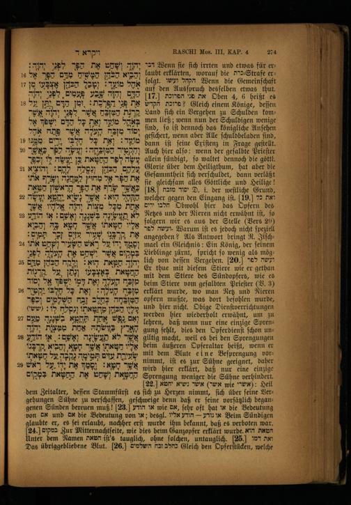 Der Raschi-Kommentar zu den fünf Büchern Moses / vollständig ins Deutsche übersetzt mit beigedrucktem Bibel-Texte in einem Bande von Julius Dessauer, emerit. Rabb., Herausgeber des: "Lexikon der Kernsprüche für Talmud und Midrasch", des "Schlüssel zum Gebetbuch sammt Ritualgesetze der Israeliten ... u.a.m.