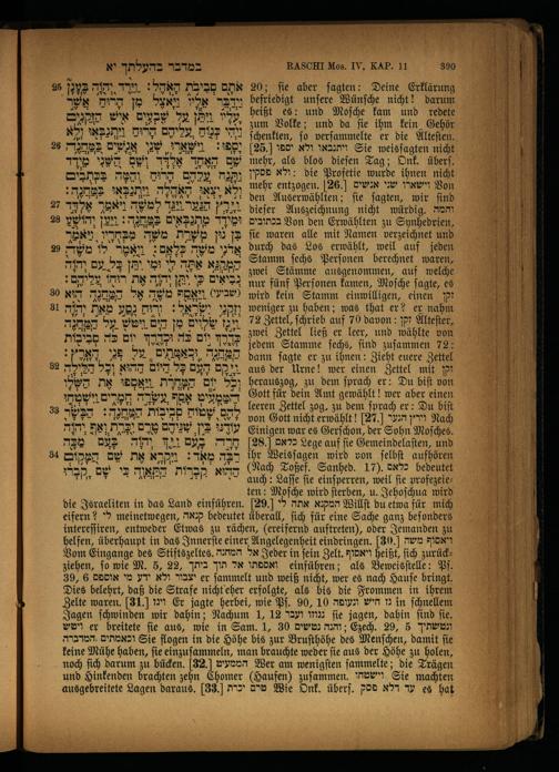 Der Raschi-Kommentar zu den fünf Büchern Moses / vollständig ins Deutsche übersetzt mit beigedrucktem Bibel-Texte in einem Bande von Julius Dessauer, emerit. Rabb., Herausgeber des: "Lexikon der Kernsprüche für Talmud und Midrasch", des "Schlüssel zum Gebetbuch sammt Ritualgesetze der Israeliten ... u.a.m.