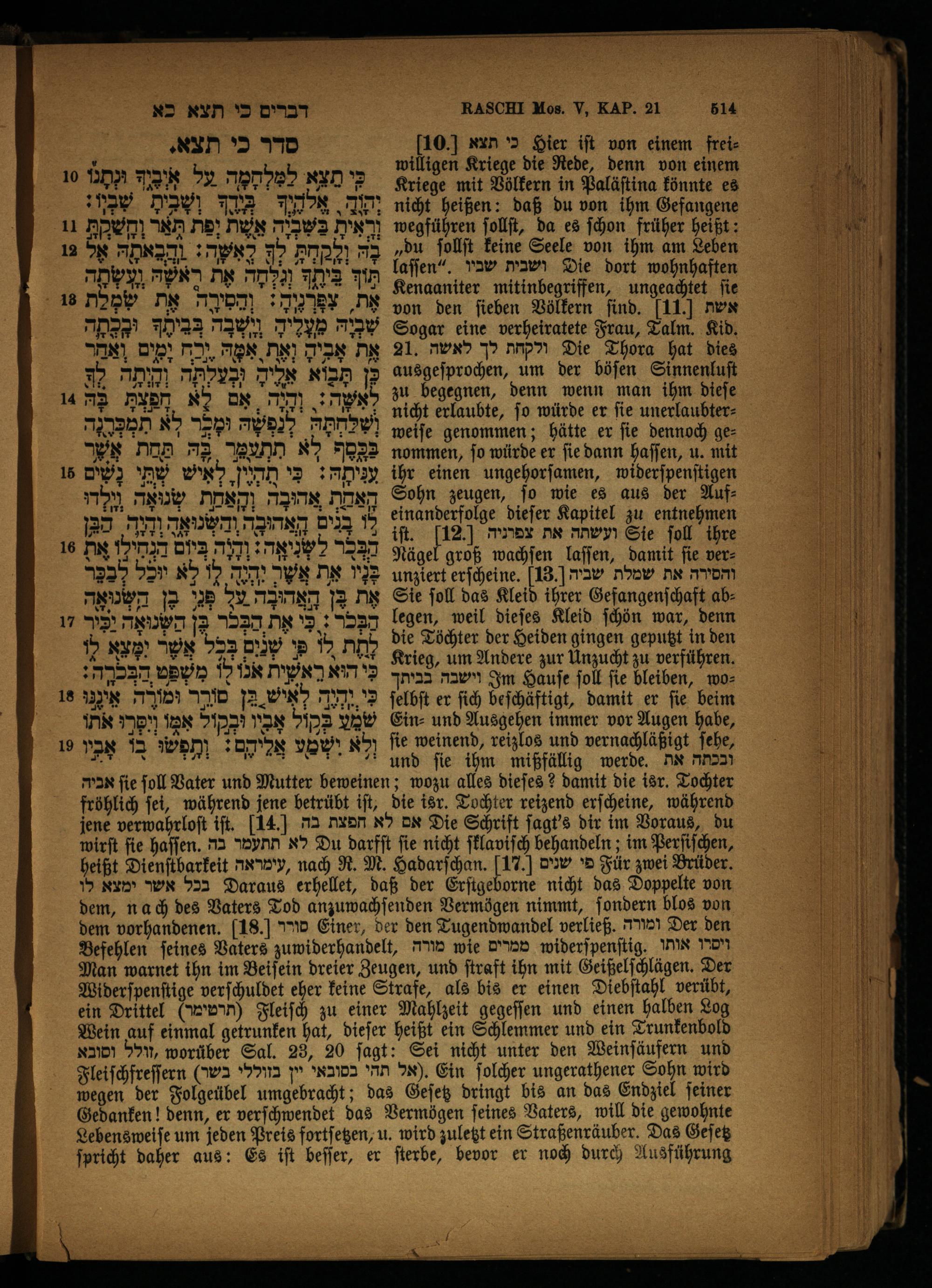 Der Raschi-Kommentar zu den fünf Büchern Moses / vollständig ins Deutsche übersetzt mit beigedrucktem Bibel-Texte in einem Bande von Julius Dessauer, emerit. Rabb., Herausgeber des: "Lexikon der Kernsprüche für Talmud und Midrasch", des "Schlüssel zum Gebetbuch sammt Ritualgesetze der Israeliten ... u.a.m.