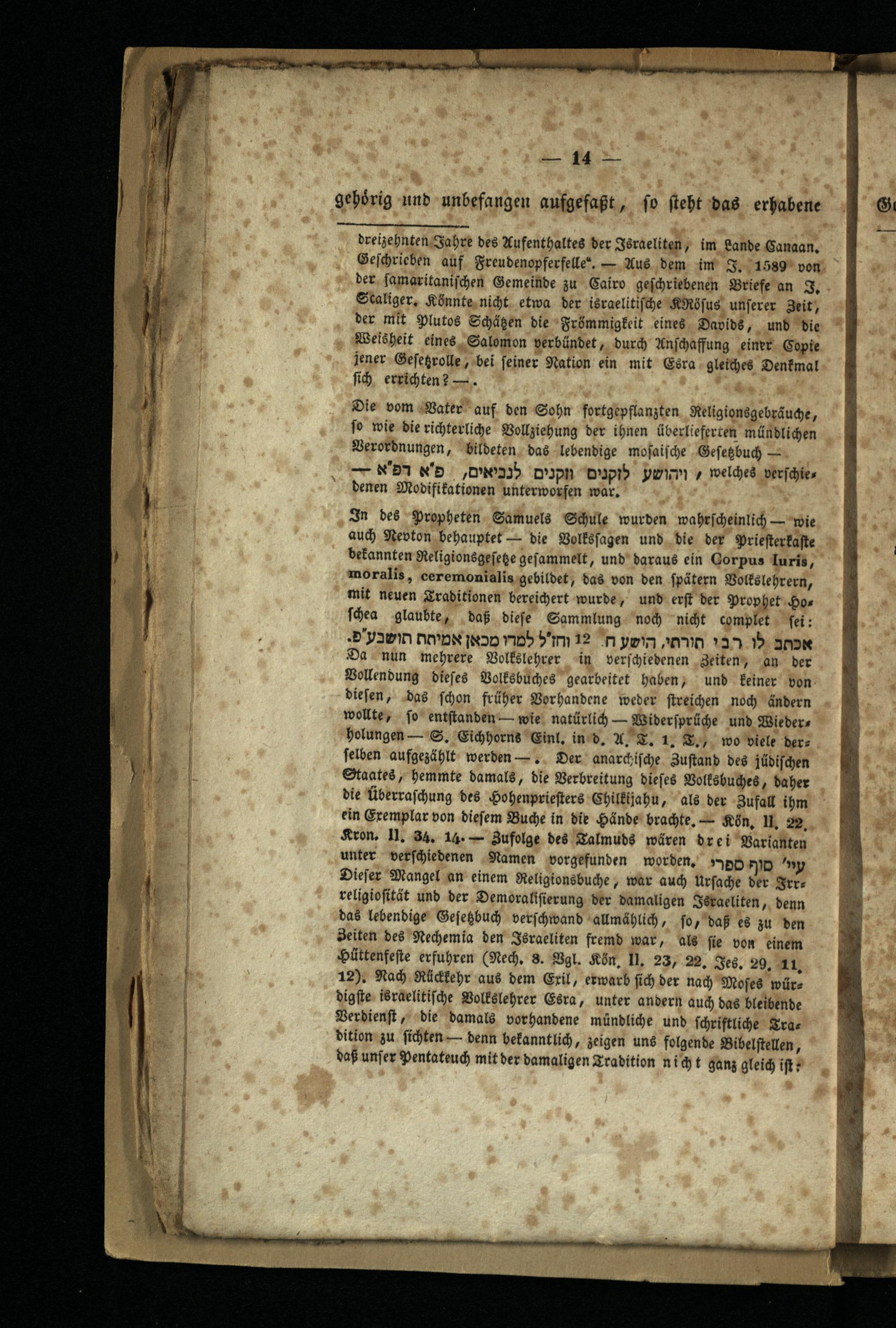 Das mosaische Judenthum : In einer Andachtsstunde als Predigt vorgetragen, am Wochenfeste 5597 und durch Anmerkungen erläutert / von M. Brück. Theolog.