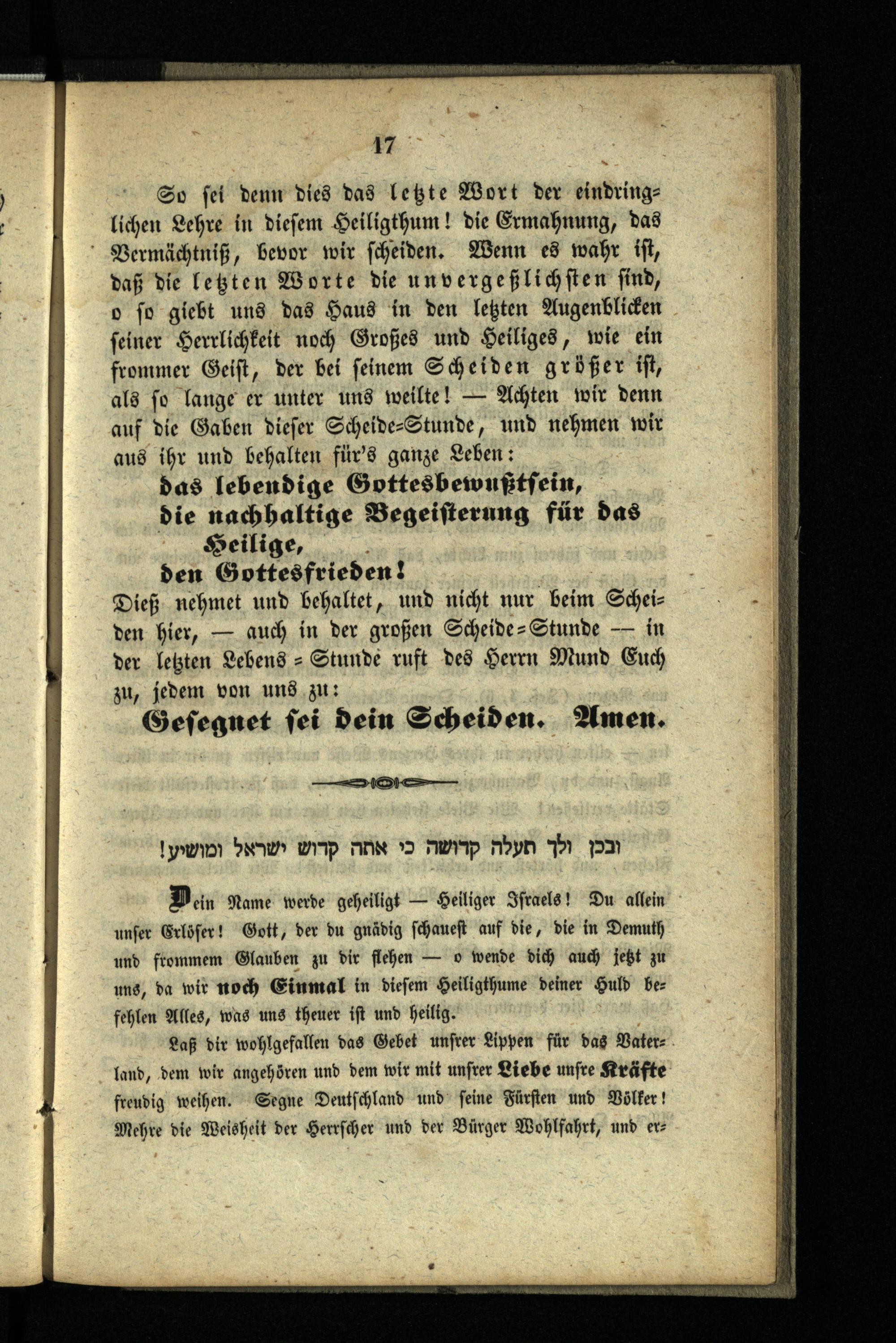 Gesegnet sei dein Scheiden!· : die letzte Predigt in dem bisherigen Israelit. Tempel am Sabbath, den 16. Elul 5604 (31. August 1844) / gehalten von Naphthali Frankfurter