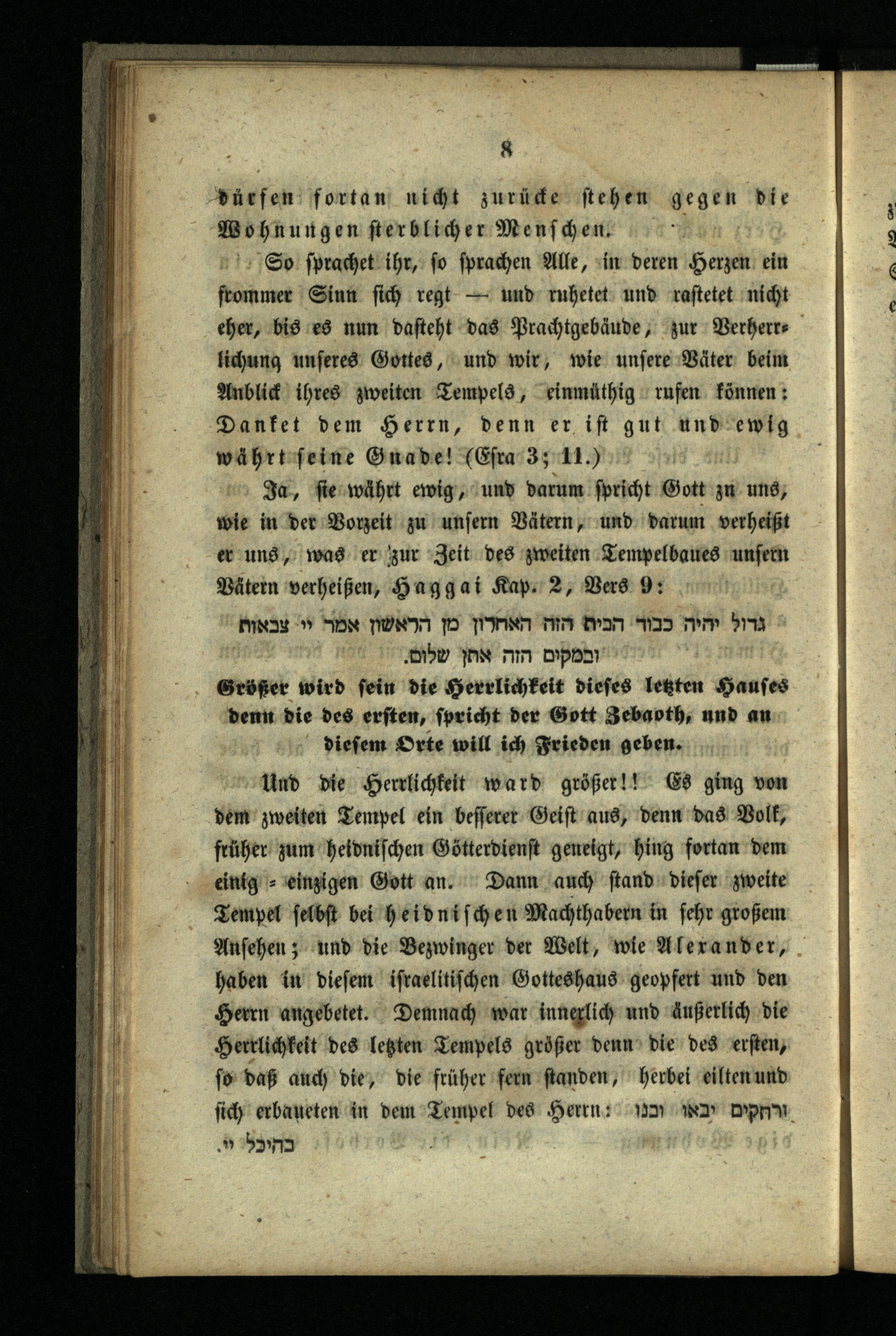 Die Herrlichkeit des zweiten Tempels, eine bei der Einweihung des neuerbauten Israel. Gotteshauses am 5. sept. 1844 gehaltene Predigt