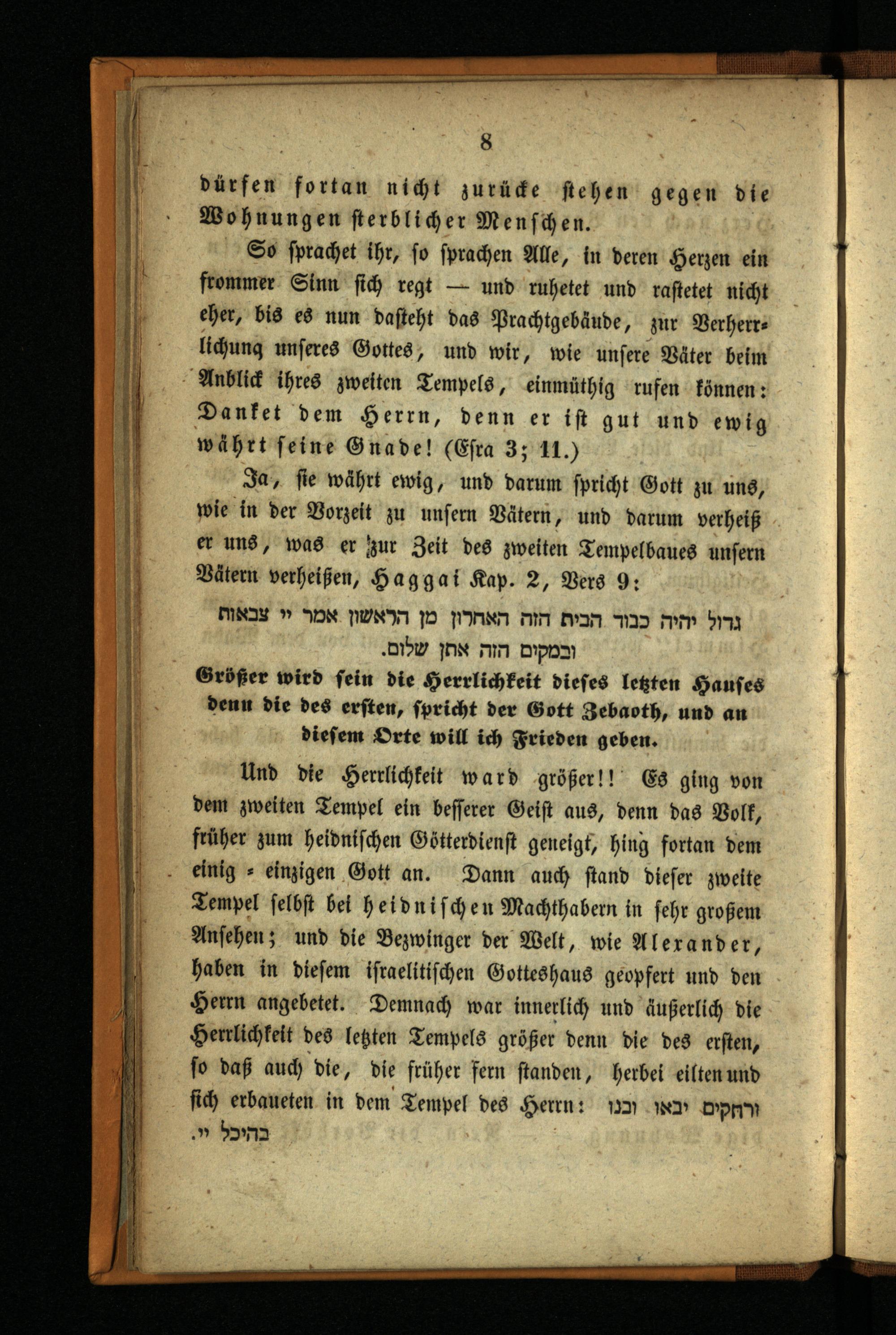 Die Herrlichkeit des zweiten Tempels, (Haggai 2 V. 9.) : eine bei der Einweihung des neuerbaueten Israel. Gotteshauses am 5. Sept. 1844 (am 21. Elul 5604) gehaltene Predigt / von Gotthold Salomon
