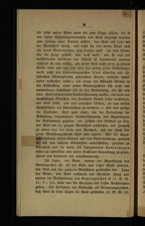 Erster Vortrag. Der älteste Bund Gottes mit der ganzen Menschheit und das Bundeszeichen.