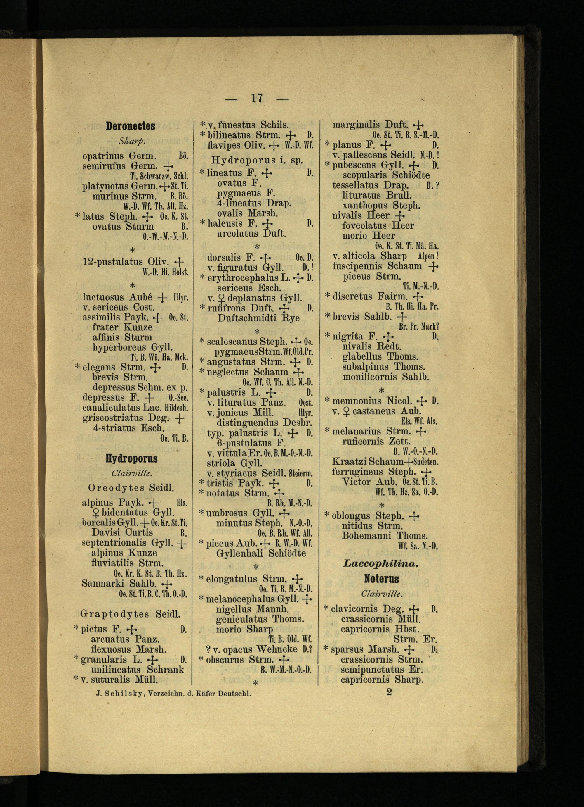 Systematisches Verzeichnis der Käfer Deutschlands : mit besonderer Berücksichtigung ihrer geographischen Verbreitung ; Zugl. ein Käfer-Verzeichnis der Mark Brandenburg / J. Schilsky