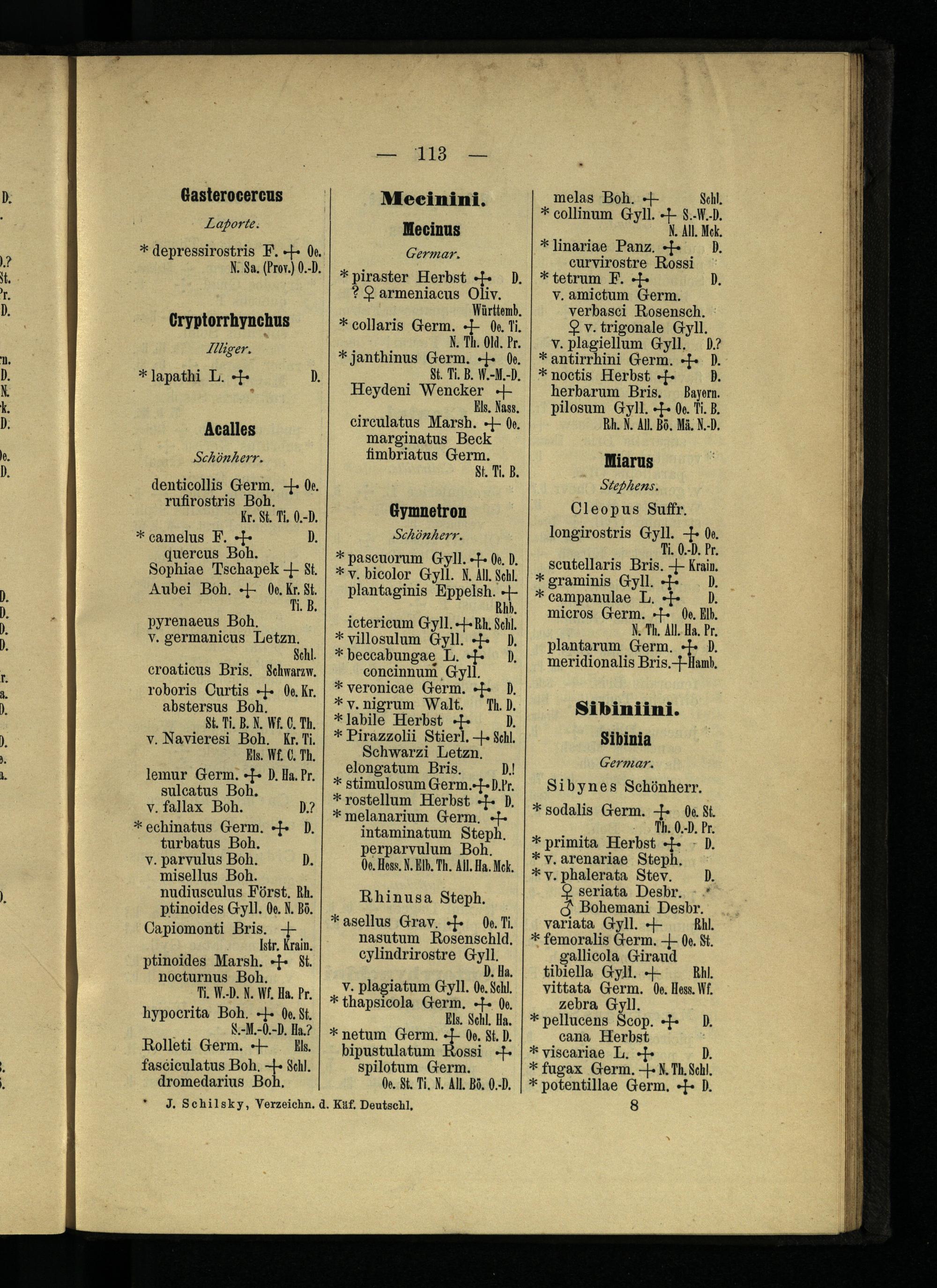 Systematisches Verzeichnis der Käfer Deutschlands : mit besonderer Berücksichtigung ihrer geographischen Verbreitung ; Zugl. ein Käfer-Verzeichnis der Mark Brandenburg / J. Schilsky