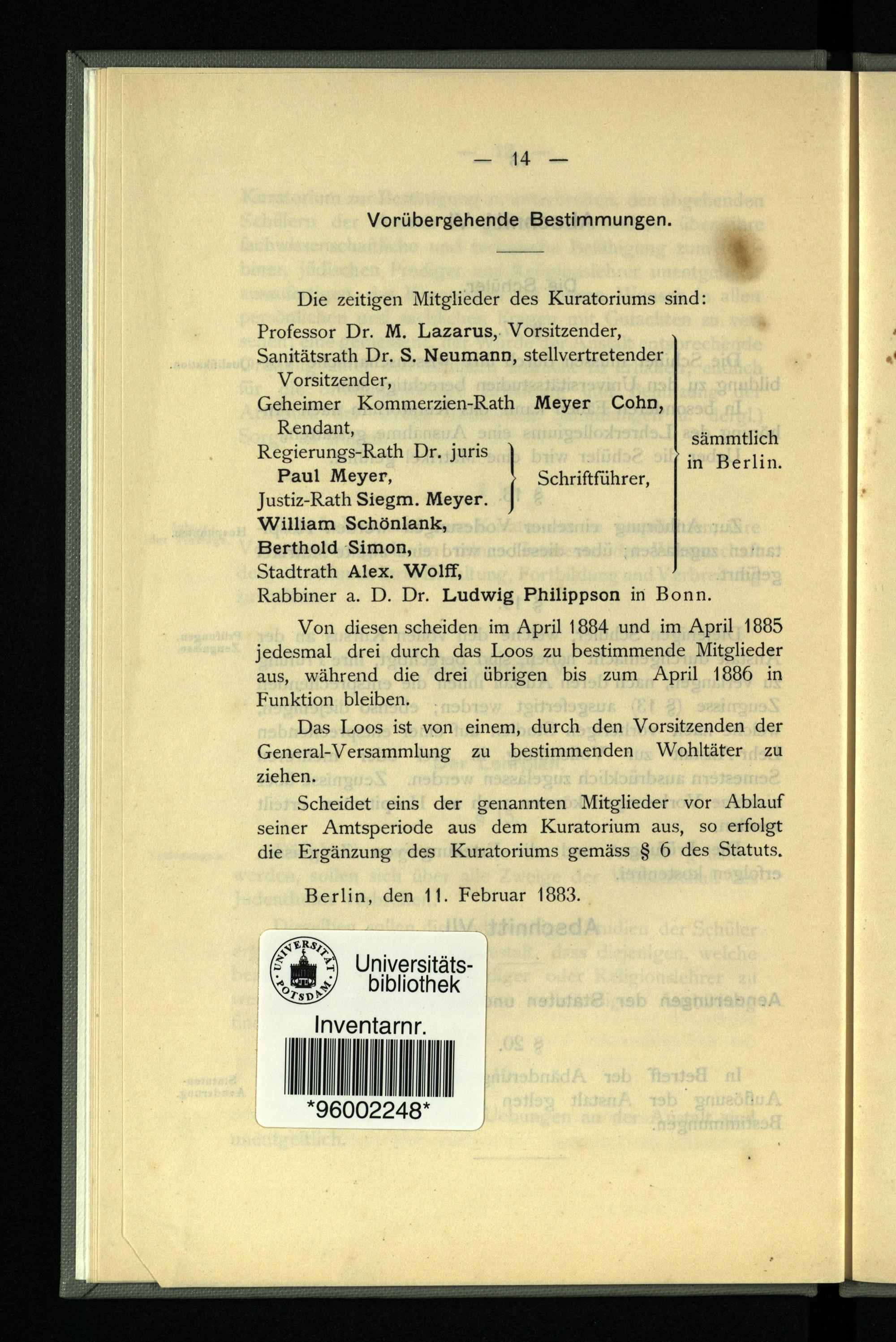 Statut der Lehr-Anstalt für die Wissenschaft des Judenthums