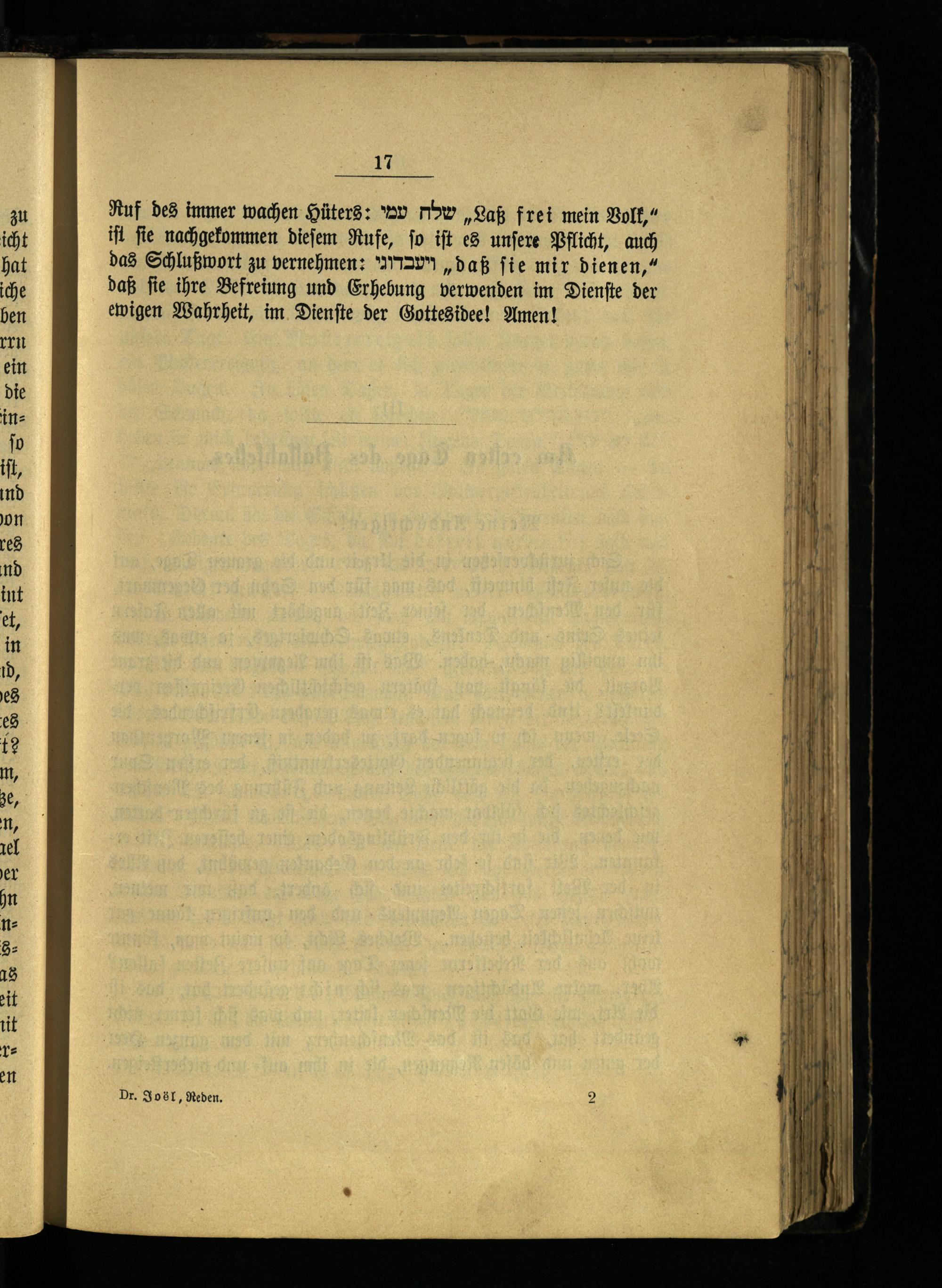 Predigten aus dem Nachlaß von Dr. M. Joël, Rabbiner der isr. Gemeinde zu Breslau / herausgegeben von Dr. A. Eckstein, Rabbiner in Bamberg und Dr. B. Ziemlich, Rabbiner in Nürnberg