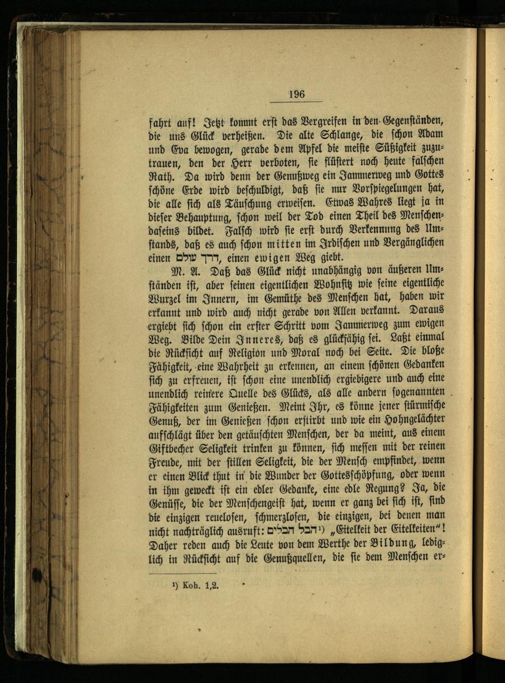 Predigten aus dem Nachlaß von Dr. M. Joël, Rabbiner der isr. Gemeinde zu Breslau / herausgegeben von Dr. A. Eckstein, Rabbiner in Bamberg und Dr. B. Ziemlich, Rabbiner in Nürnberg