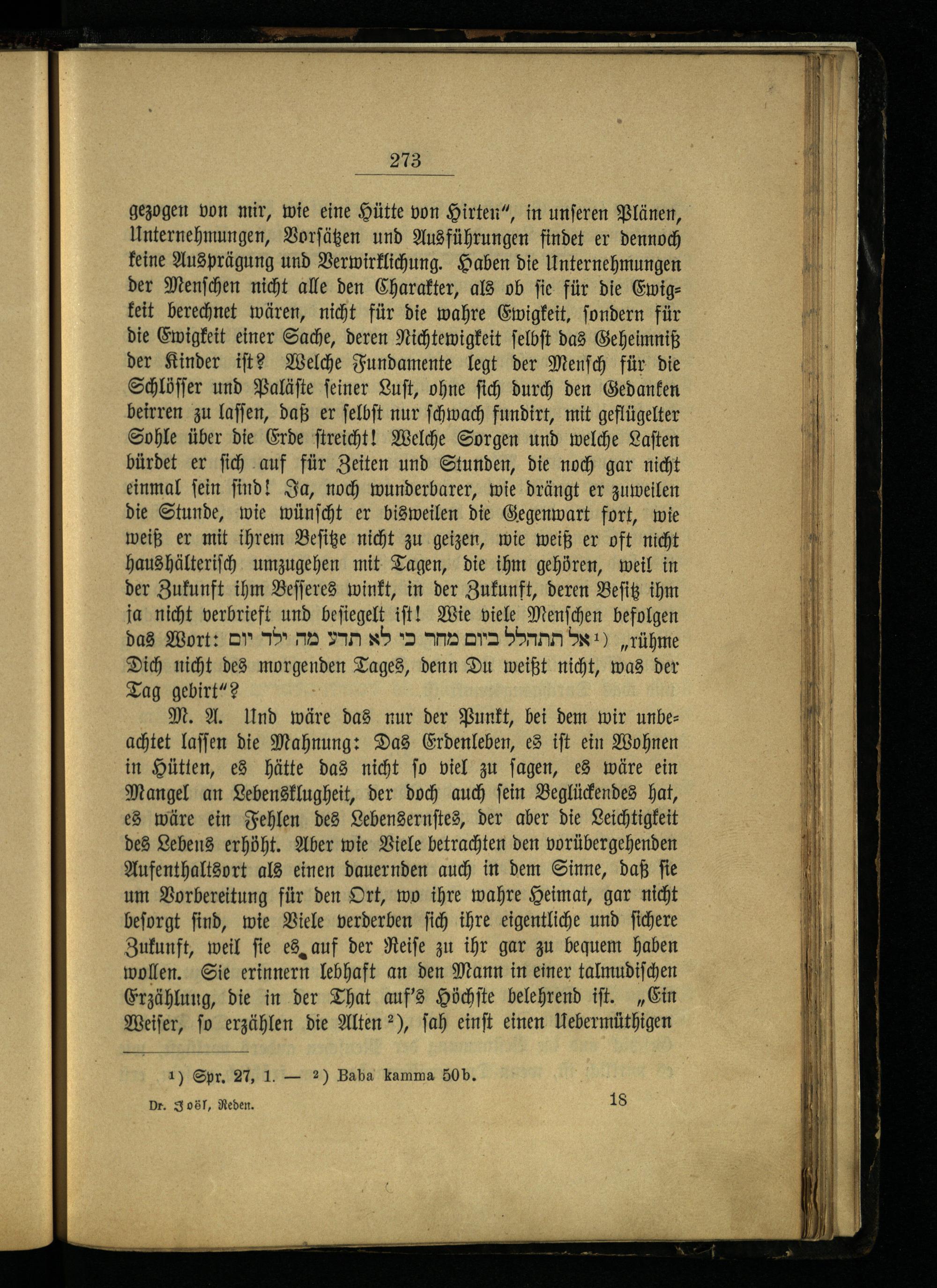 Predigten aus dem Nachlaß von Dr. M. Joël, Rabbiner der isr. Gemeinde zu Breslau / herausgegeben von Dr. A. Eckstein, Rabbiner in Bamberg und Dr. B. Ziemlich, Rabbiner in Nürnberg