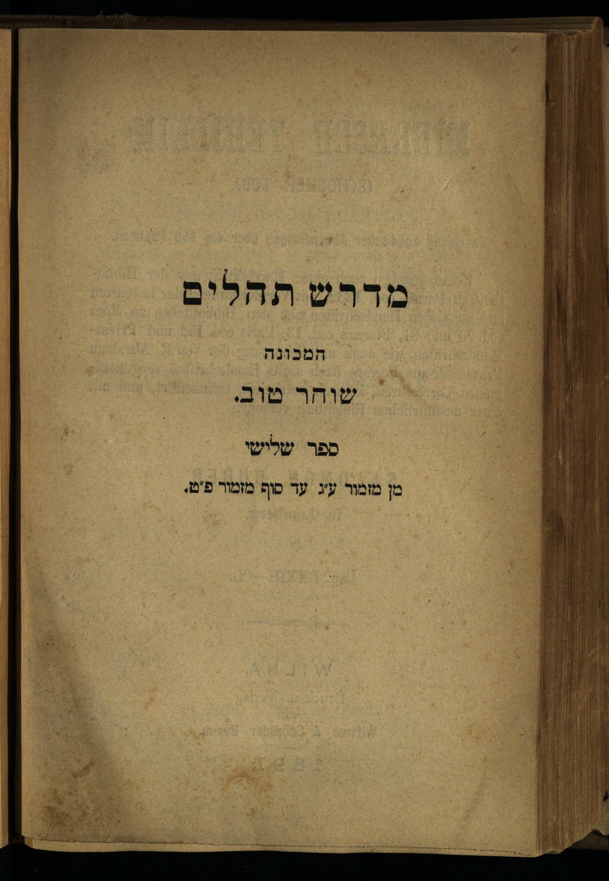 midraš tehilim : Sammlung agadischer Abhandlungen über die 150 Psalmen / mi-meni Šelomoh Buber