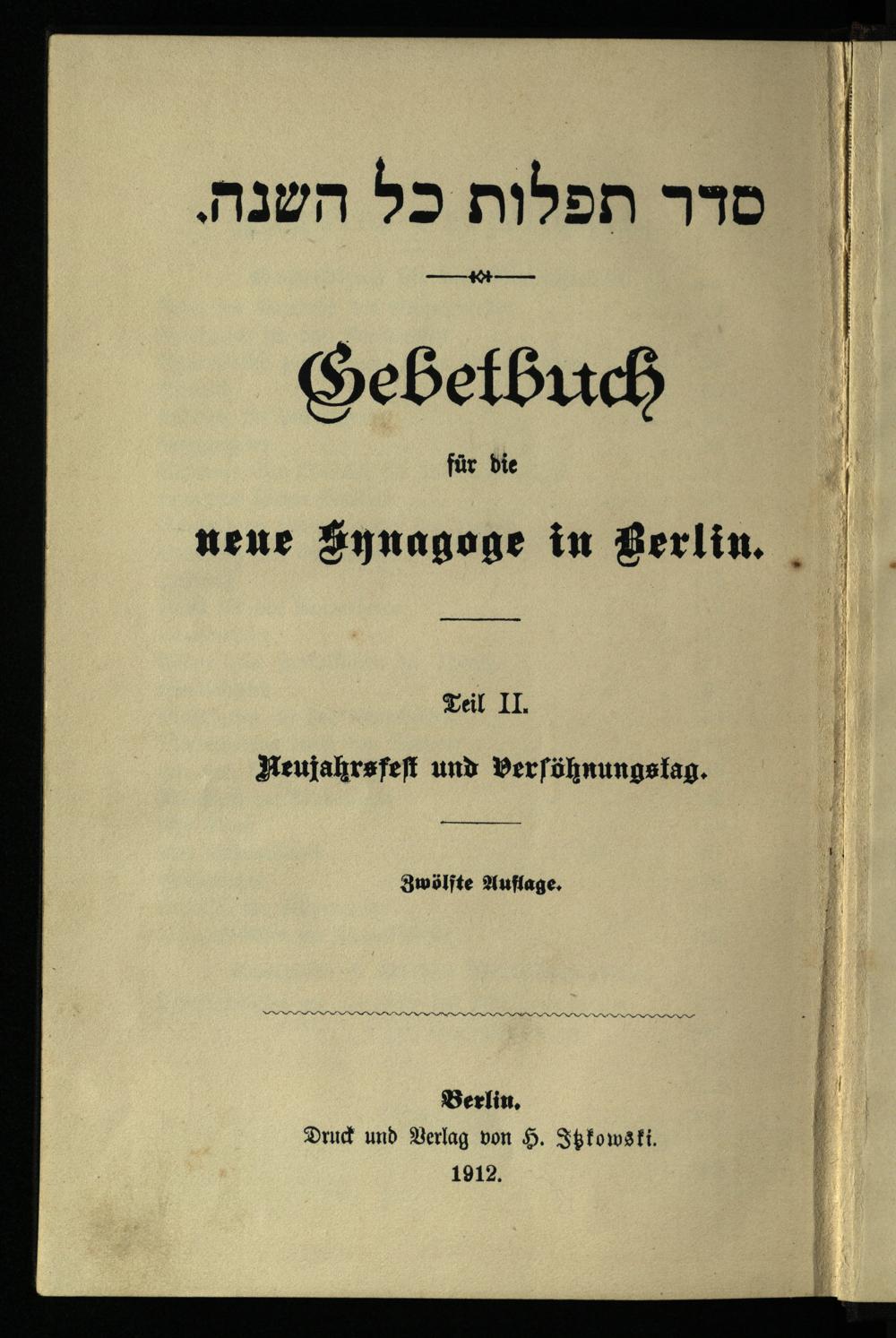 T.2, 1 (1912) Neujahrsfest und Versöhnungstag