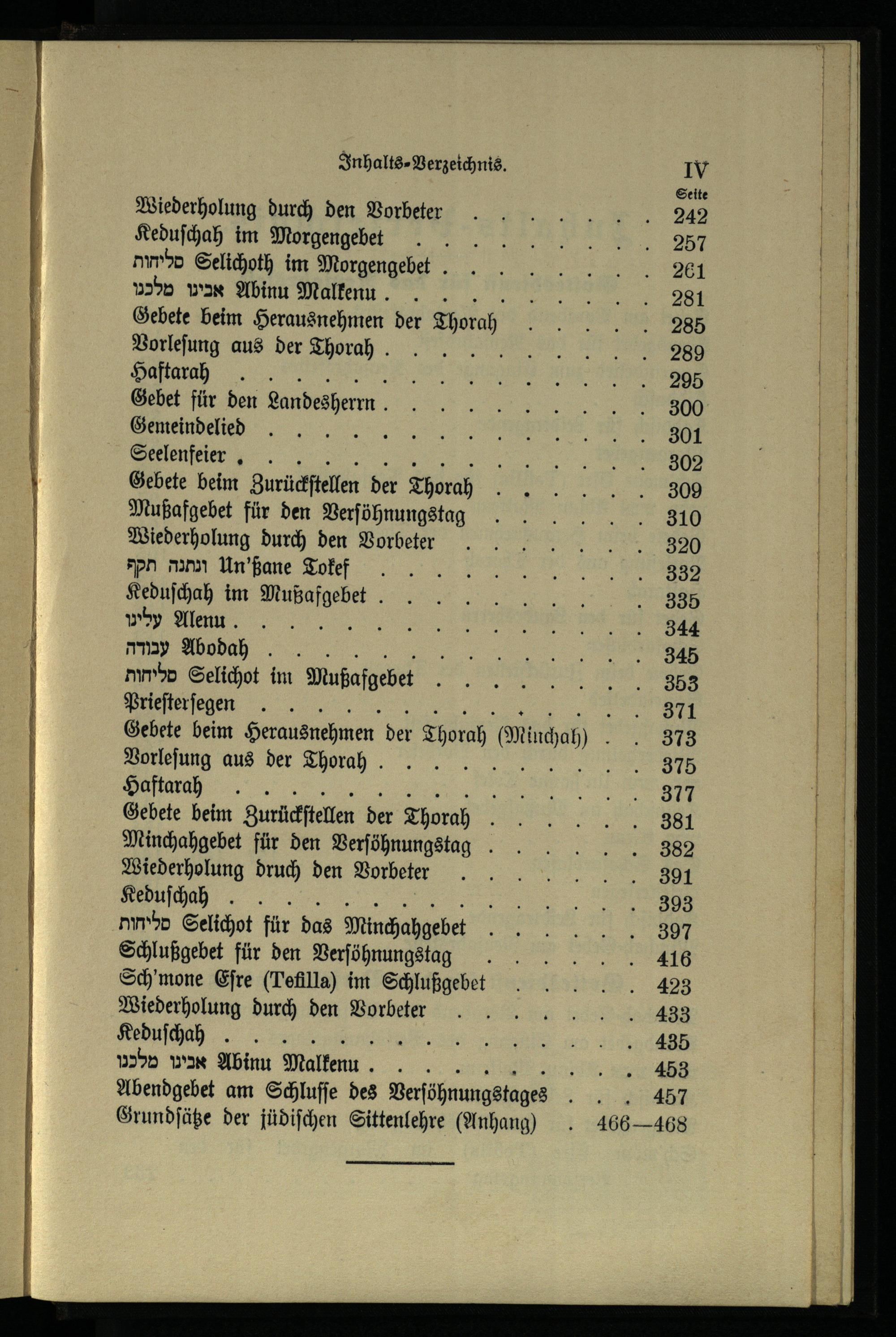 T.1, 2. Wochentage, Sabbathe und Festtage nebst drei Anhängen