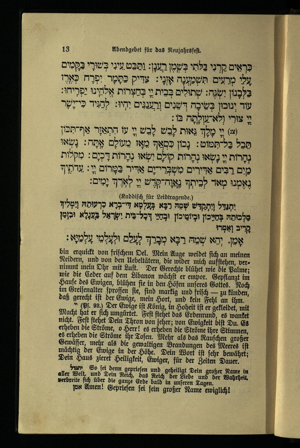 תפילת מוסף לראש השנה Mußafgebet für das Neujahrsfest.