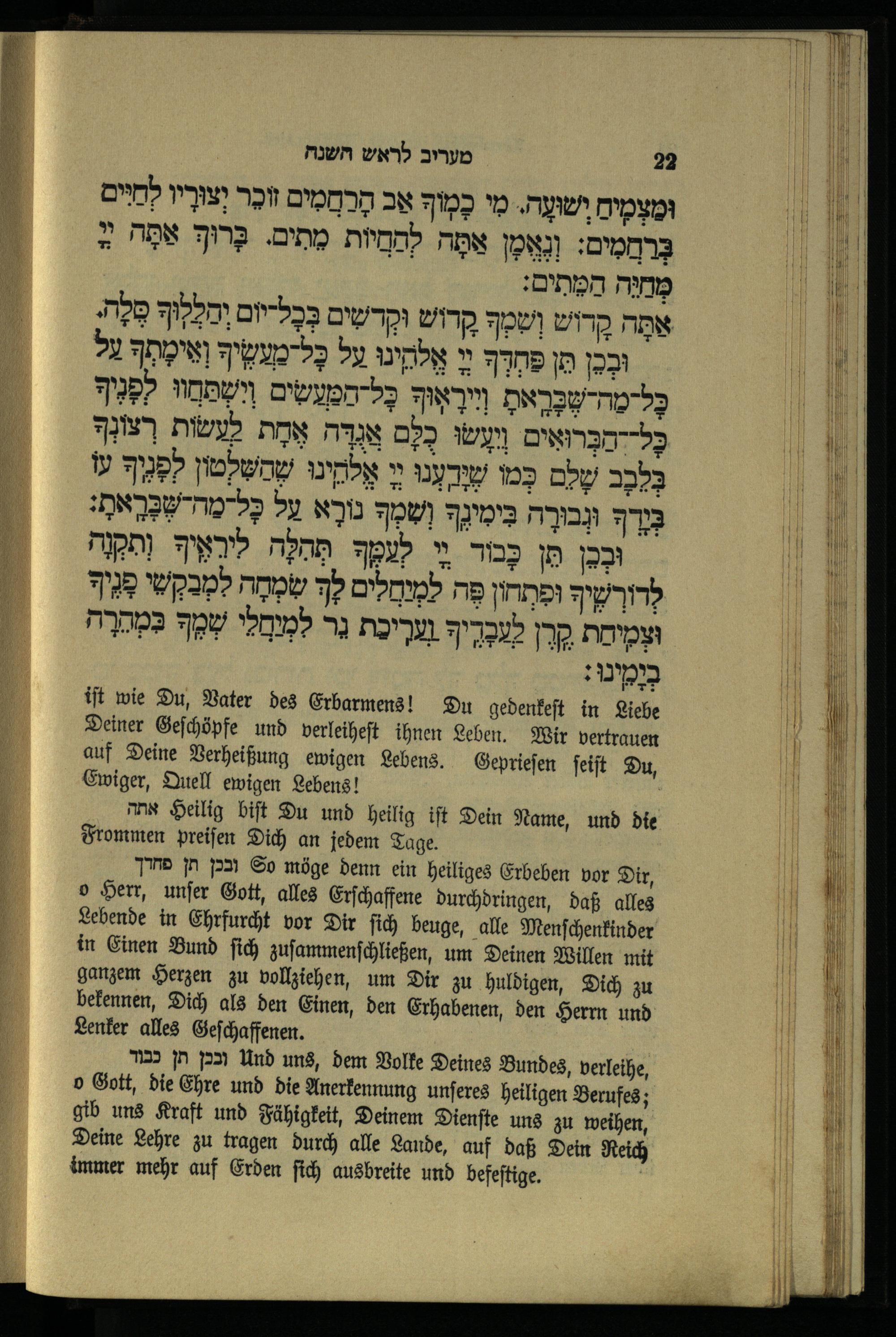 תפילת מוסף לראש השנה Mußafgebet für das Neujahrsfest.