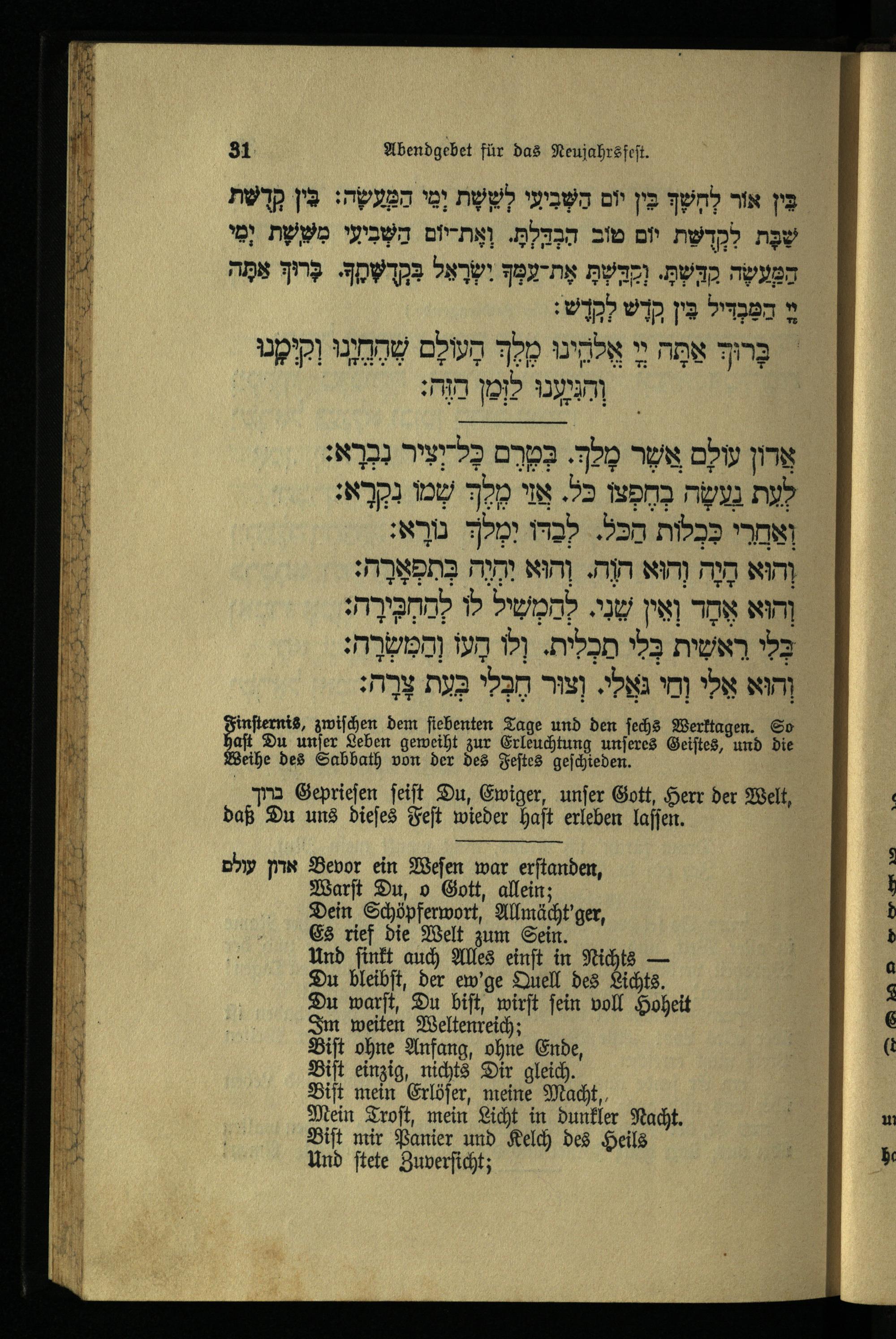 תפילת מעריב לראש השנה Abendgebet für das Neujahrsfest.