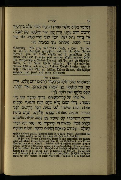T.1, 2. Wochentage, Sabbathe und Festtage nebst drei Anhängen