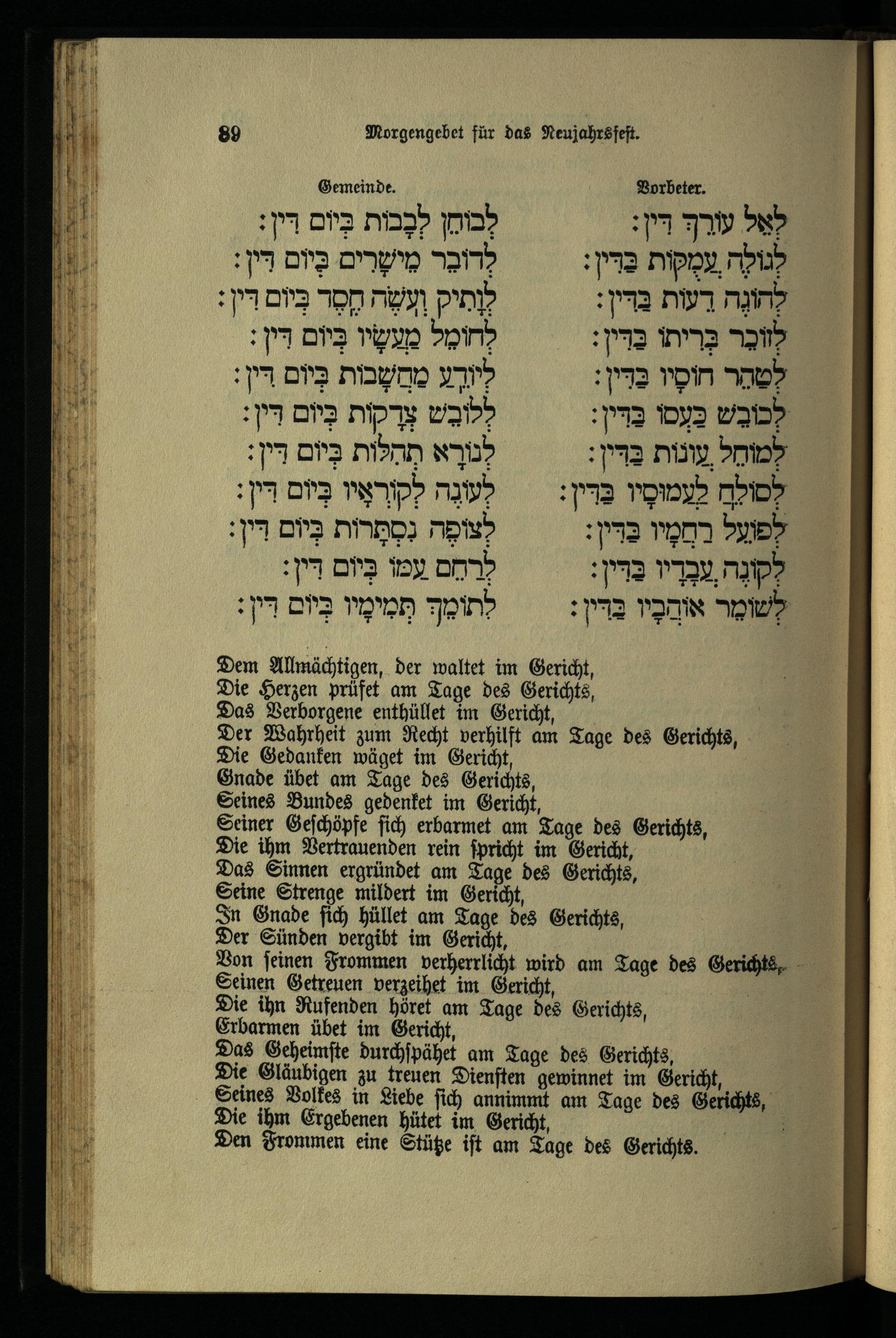 תפילת מוסף לראש השנה Mußafgebet für das Neujahrsfest.