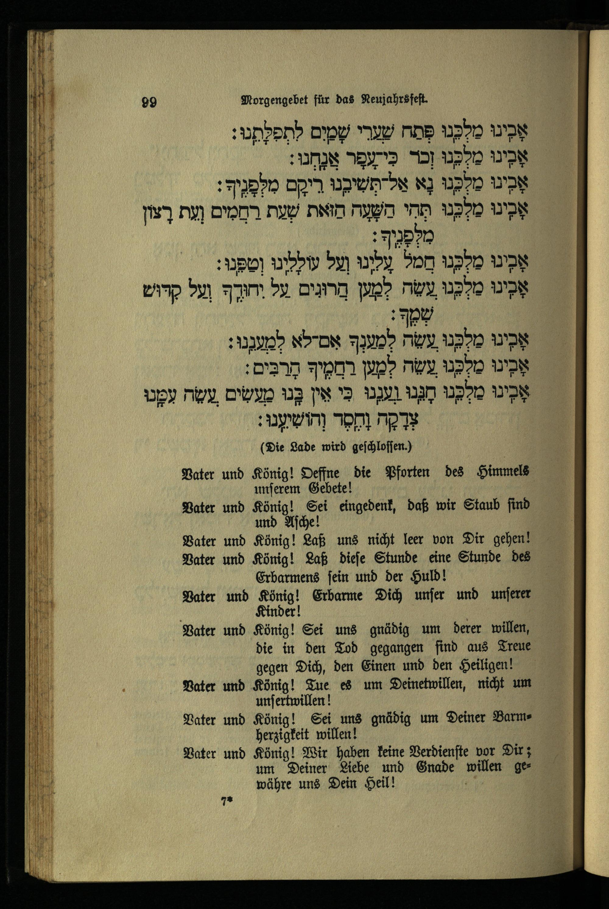תפילת מוסף לראש השנה Mußafgebet für das Neujahrsfest.