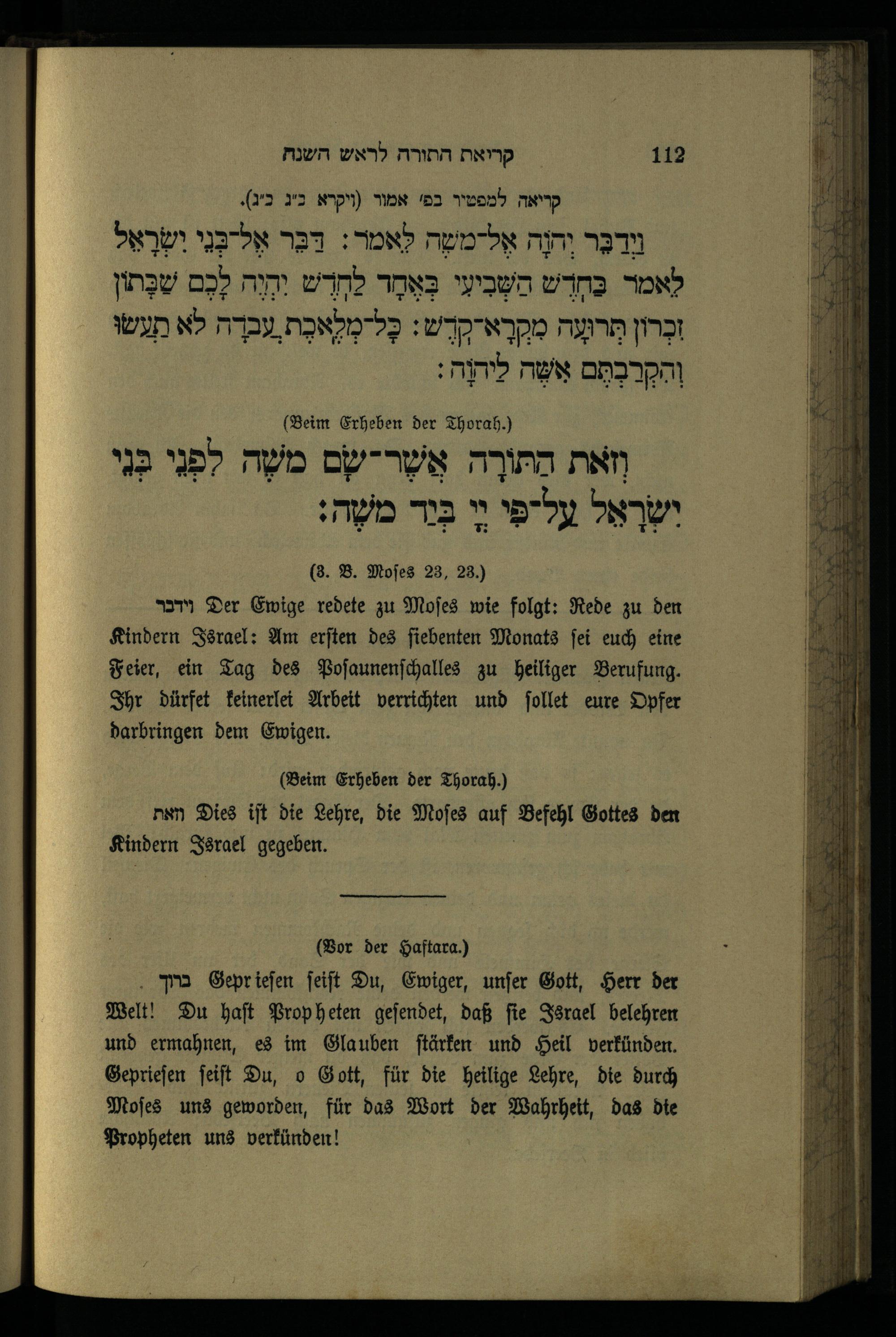 סדר קריאת התורה ליום ראשון Vorlesung aus der Thorah am ersten Tage.