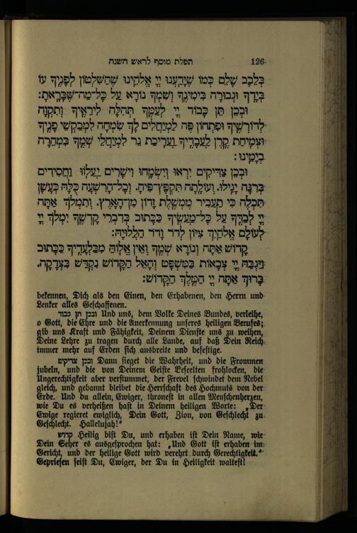 תפילת מוסף לראש השנה Mußafgebet für das Neujahrsfest.