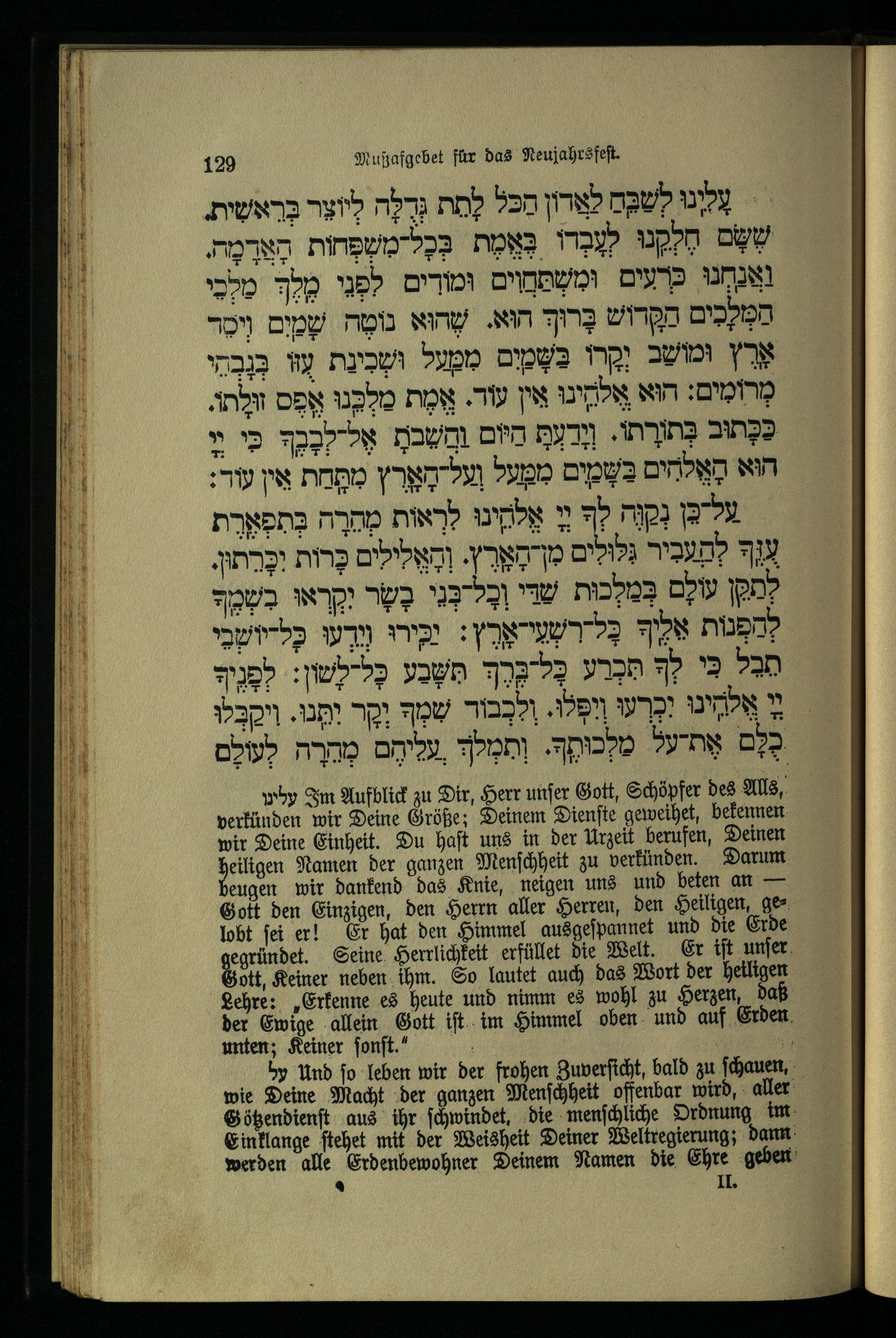 תפילת מוסף לראש השנה Mußafgebet für das Neujahrsfest.