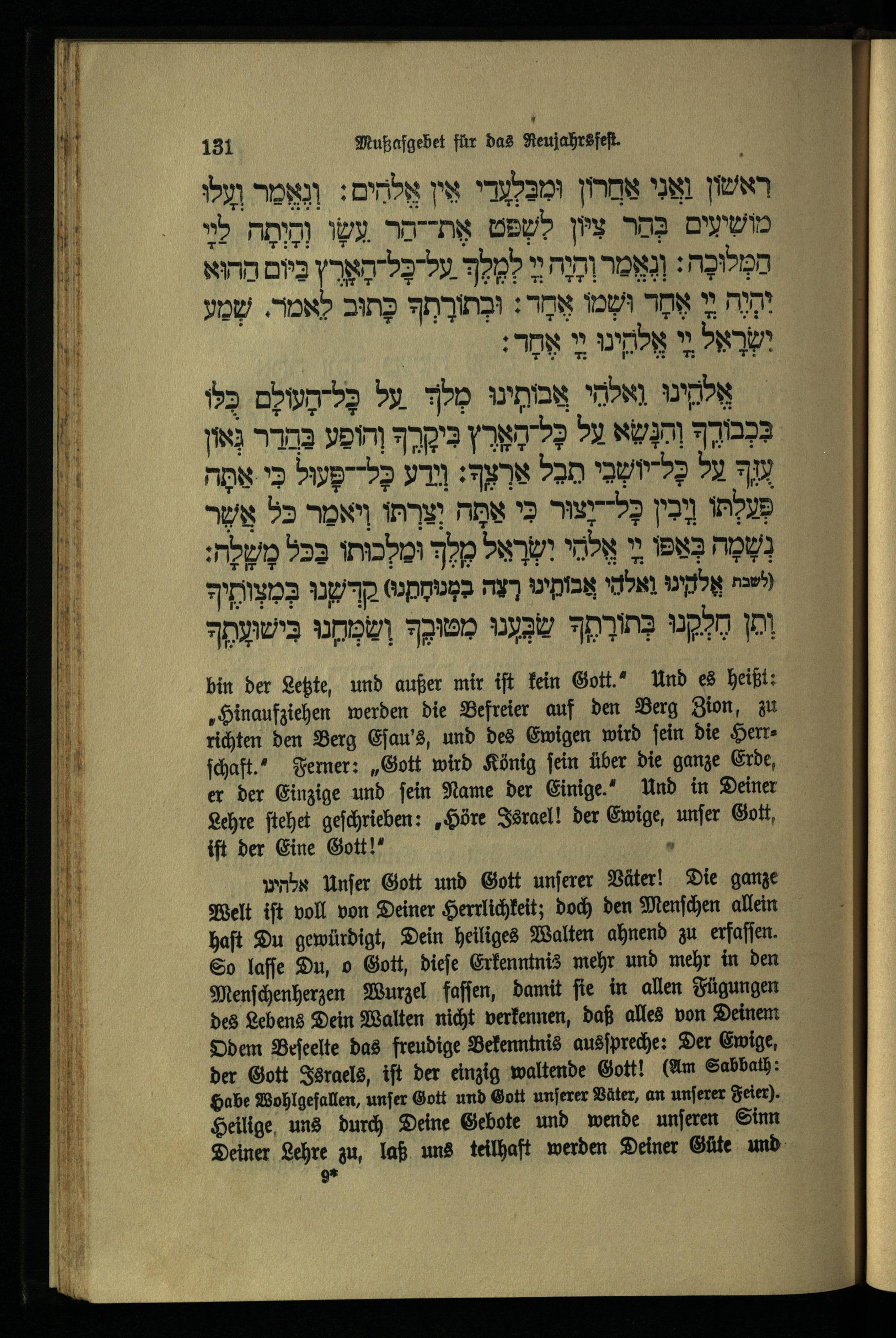 תפילת מוסף לראש השנה Mußafgebet für das Neujahrsfest.